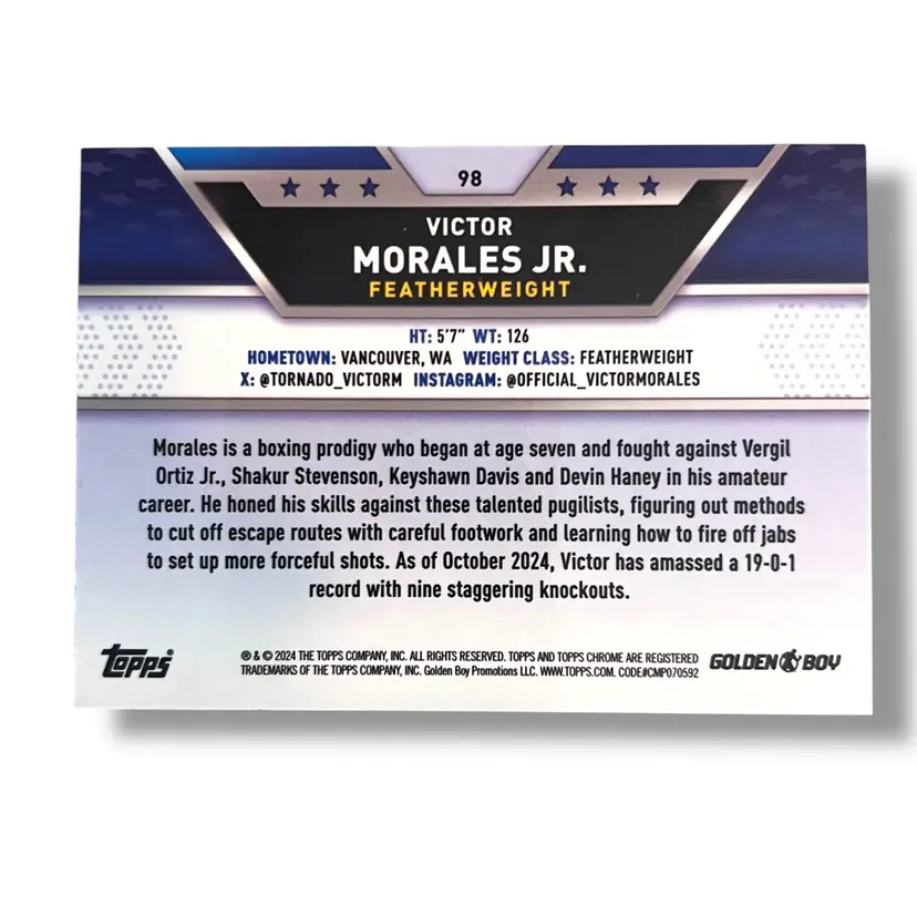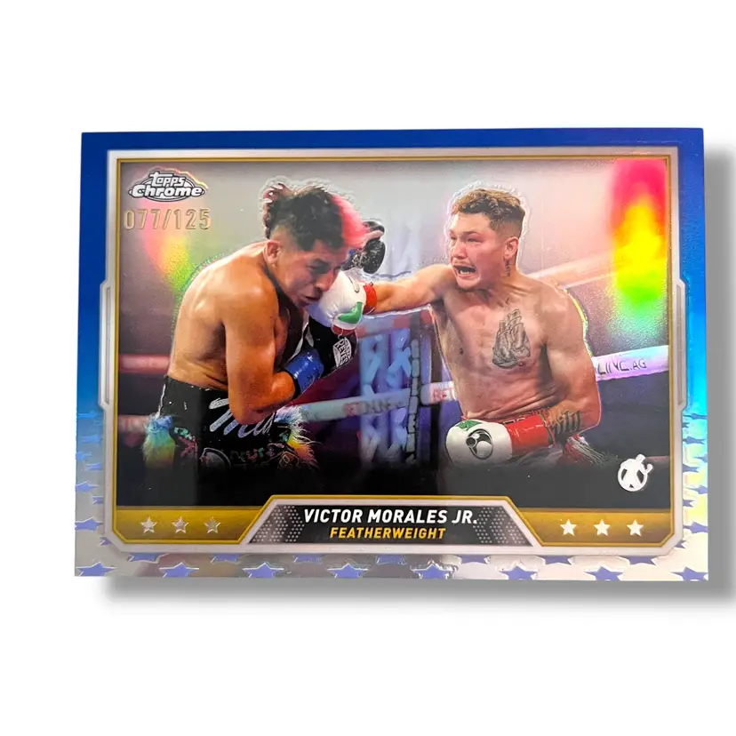Here We Have a 2024 Topps Chrome Boxing Victor Morales Jr. 77/125 Blue Refractor #98