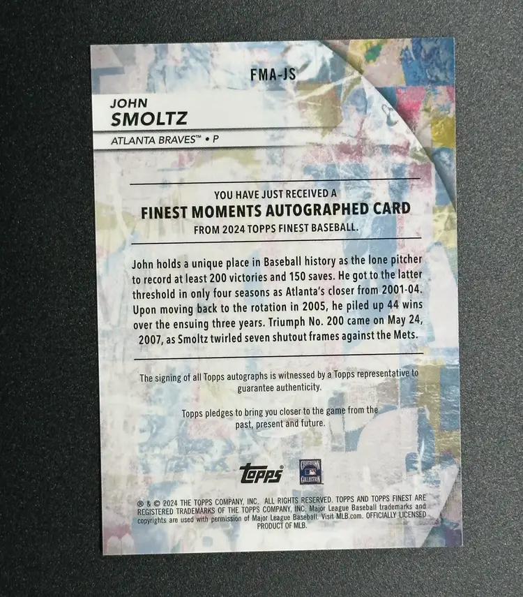 2024 Topps Finest John Smoltz Finest Moments Refractor Atlanta Auto