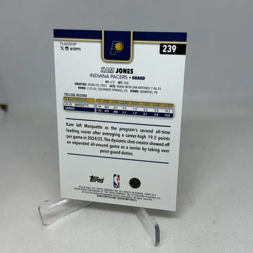 2025-26 Topps NBA Basketball Kam Jones #239 Rookie Rainbow Foil Indiana Pacers