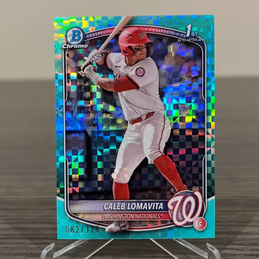 2025 Bowman Chrome Caleb Lomavita 82/125 1st Bowman Washington Nationals Card No. BCP-120