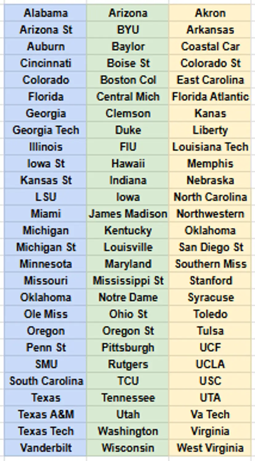 This will be a RANDOM DRAFT EVENT. In this listings pictures, you will find THREE COLUMNS of teams. Your claim of $15 includes one draft pick from each column. Once claims have filled/closed, we will use the WHEEL OF DESTINY to determine draft order of the first round. In the first round, we will be drafting from the BLUE list. In the second round, the draft order will be reversed, and we will be drafting from the GREEN and YELLOW lists. The third round will revert to the original draft order, and all remaining teams will be claimed.