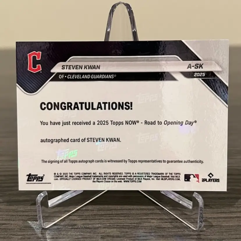 2025 Topps Now Road To Opening Day Steven Kwan 46/99 Green Foil Autograph Card No. A-SK Cleveland Guardians