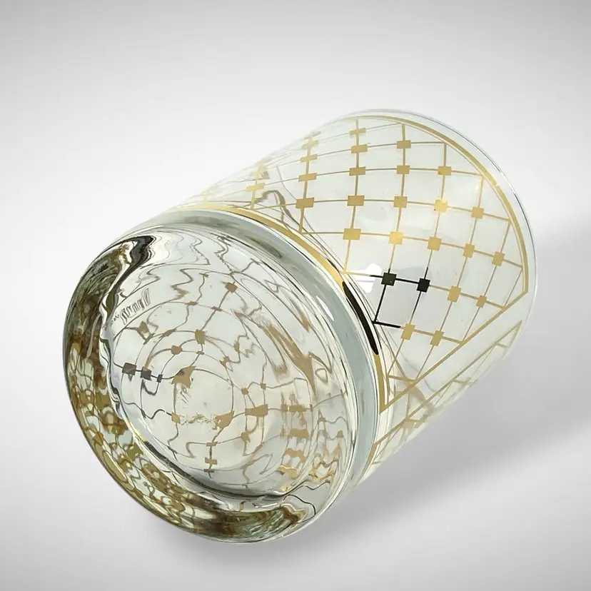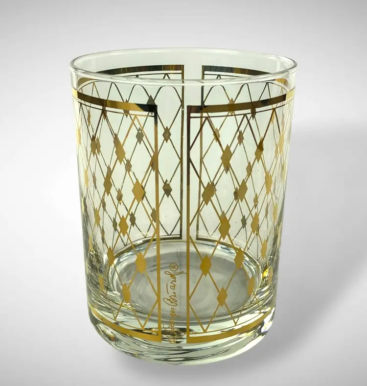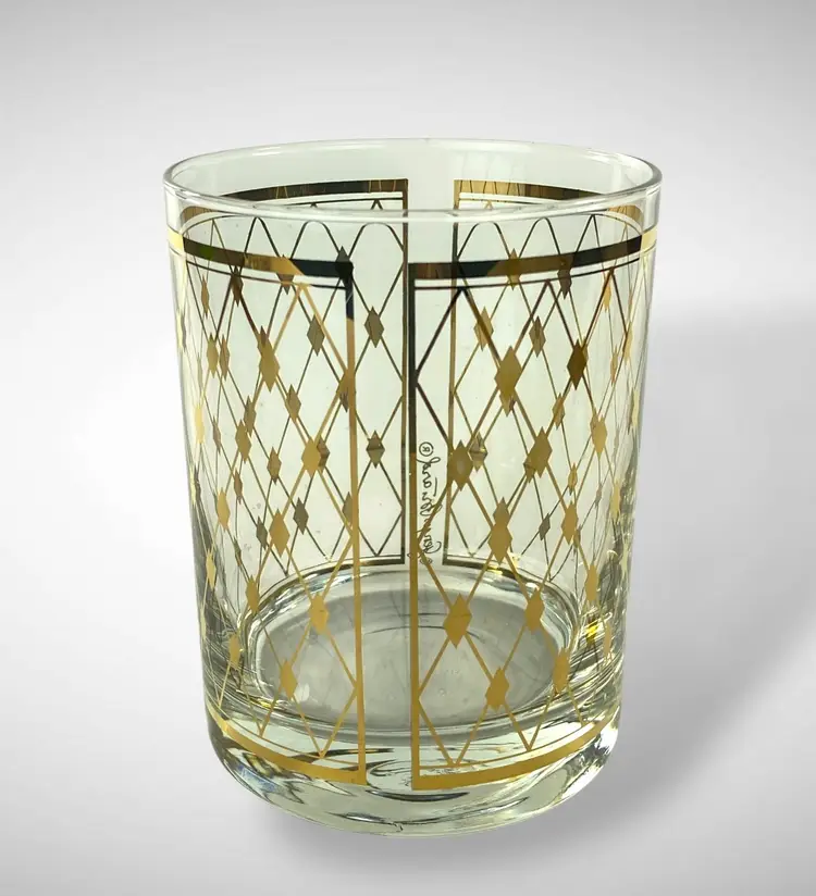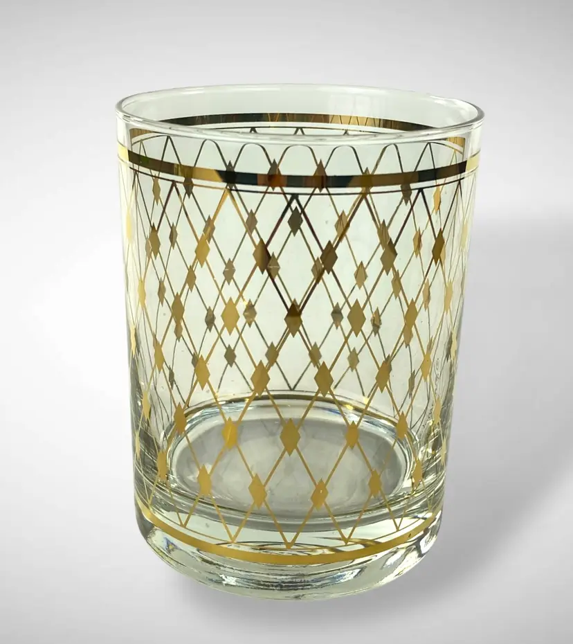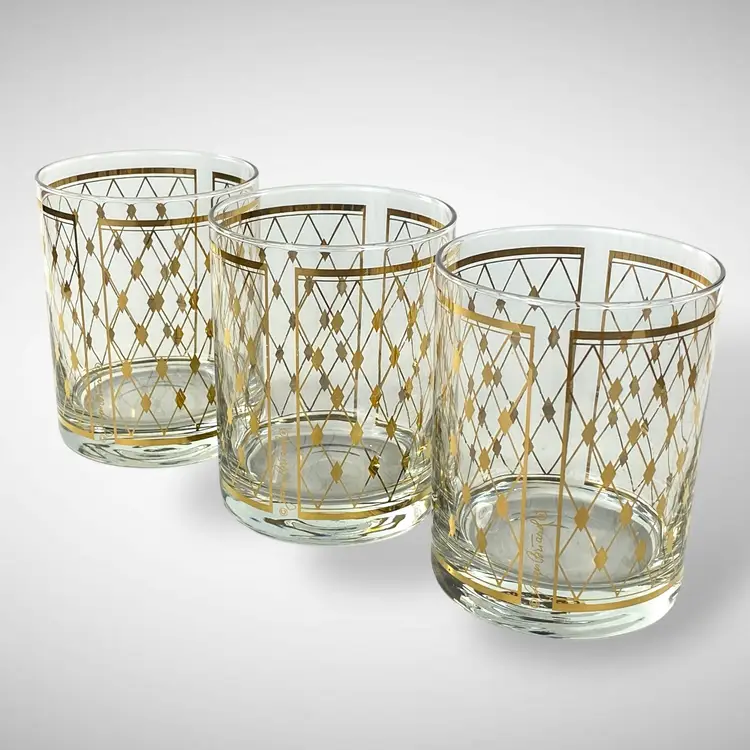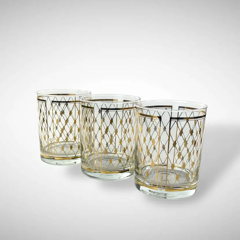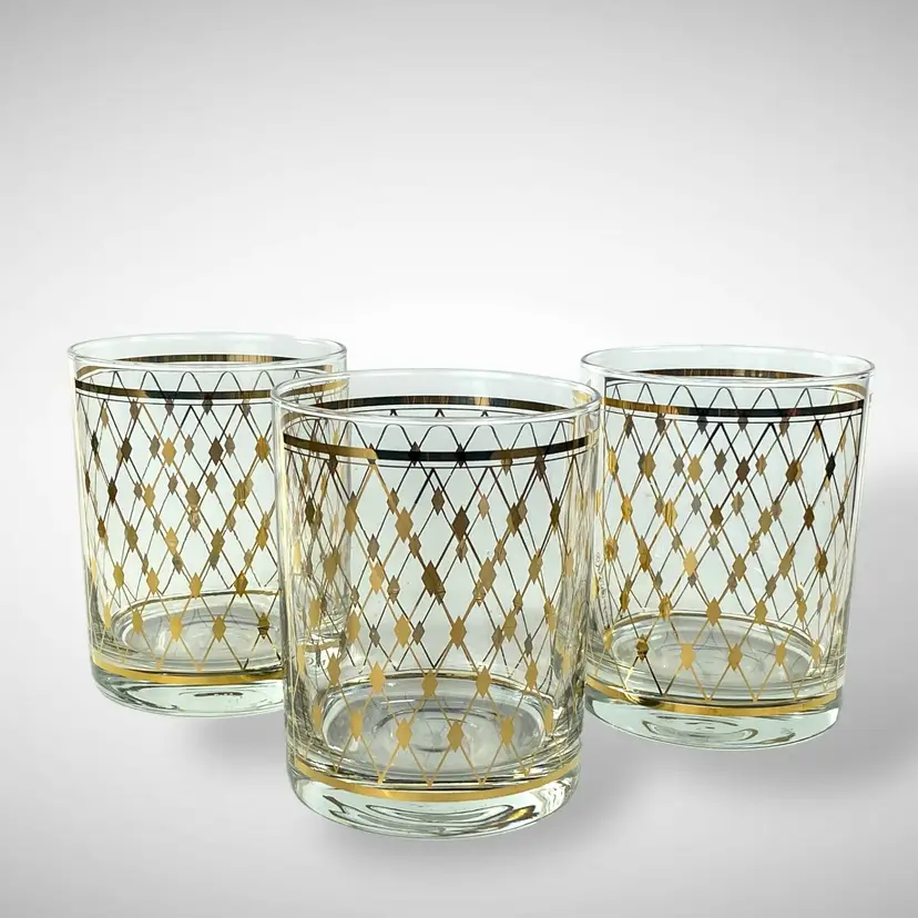 Set of 3 Georges Briard Vintage Gold Lattice Lowball Glasses MCM Barware