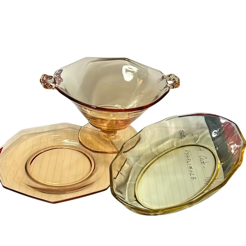 *** notice the color variation from the celery dish to the 2 other pieces, yet they are supposed to match. Perhaps something unusual since it was the Great Depression era. No damage on any of the dishes
