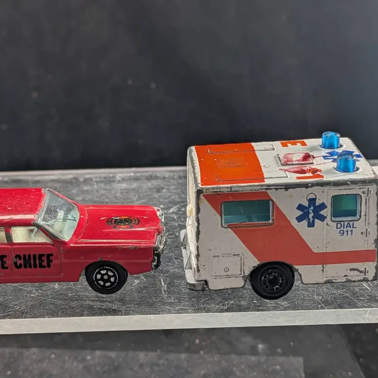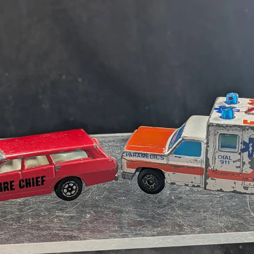 The product is a set of three diecast vehicles in 1:64 scale, including an ambulance, car, and van. These vehicles are in multi-color with a Rescue Squad theme, making them suitable for both boys and girls. The brand varies, and the vehicles are made in China. They are not autographed and have not been customized, suitable for any age range. With a mix of branded and unbranded vehicles, this set provides a fun and imaginative play experience for children who enjoy playing with rescue squad-themed toys. Items is USED. My items are purchased from estate sales and will have wear on them. I describe the items and I will bring your attention to any easily seen problems. I ask all buyers to zoom in on the pictures and ask any questions before purchasing. The pictures are part of the description. I have items to the best of my ability but I am not an expert. All items are SOLD AS IS . Occasionally there may be minute defects (tiny cracks, worn glaze, etc) that cannot be easily detected. That is normal wear and tear on a used item. I do accept free returns Car-11