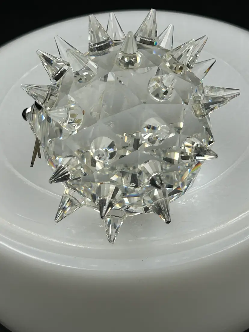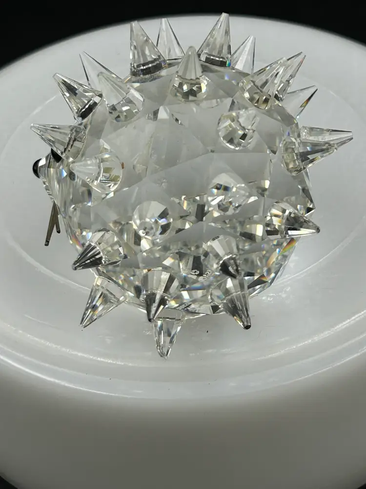 Largest hedgehog is missing a quill, see picture. Two smaller ones have a few tiny flea bites on end of a couple quills. No major chips. No cracks. Large-1.75Hx 2W. Small – 1.5 H.x 2W