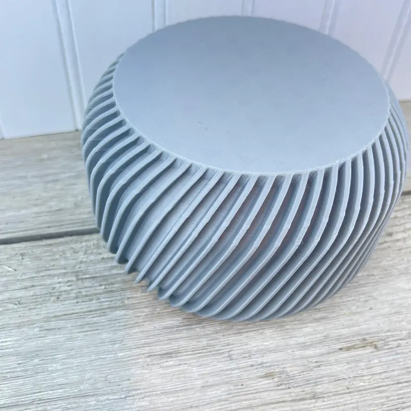 The holder is 3D printed using PLA plastic filament. 3D printing is done by printing layer upon layer of filament to build up and create the print.