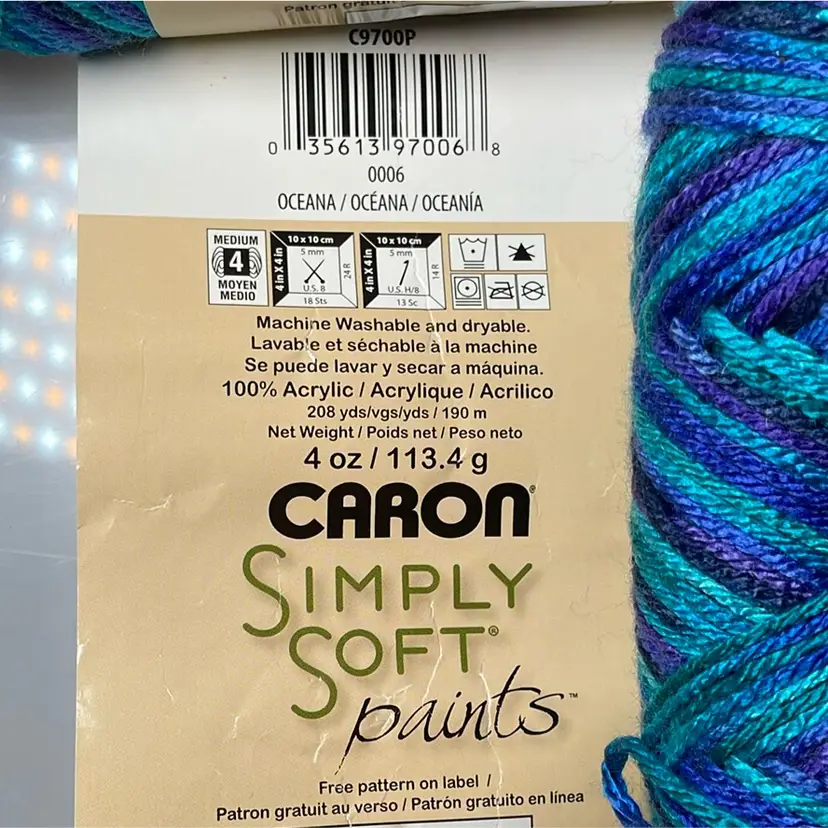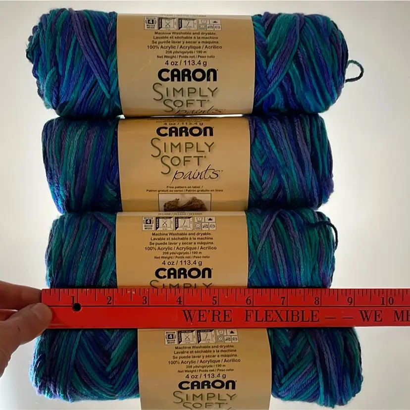 1 skein has been partially used (weighing in at 3.9oz out of 4oz), the other 3 have not been used. A full skein is 208 yards [190 meters].