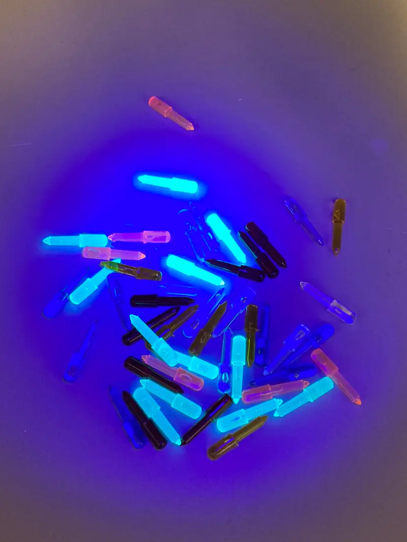 These bulbs are in good condition. They measure approximately 1.14" long overall. The bulb end measures approximately 1/2" long. And the peg end is approximately 0.20" diameter.