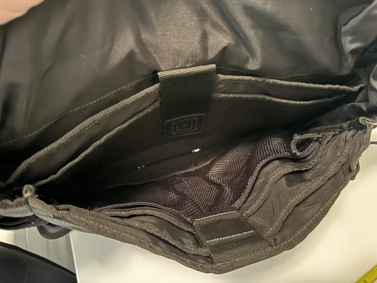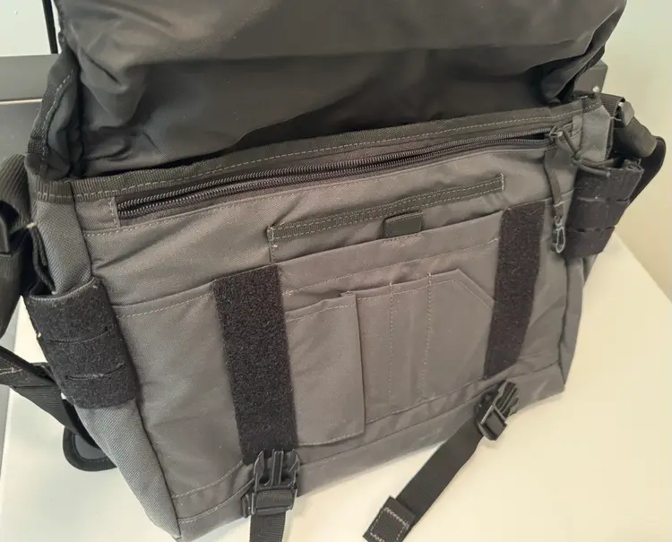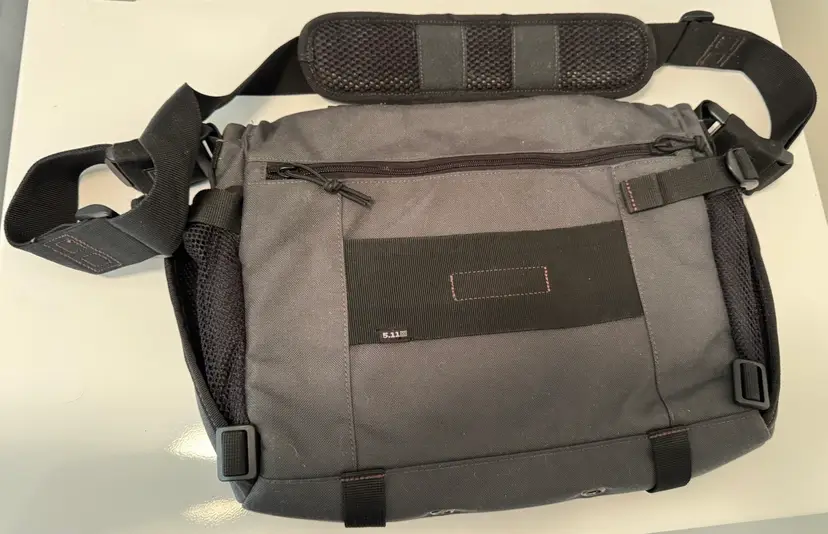 I do not know which of the 5.11 laptop bags /slim messengers this one is, I was given it a decade ago and it’s been sitting in my closet most of that time as it doesn’t appear “professional” enough to have with me on work trips. If you can get away with a tactical look for a laptop bag, I envy you! It has tons of organization, the front of the padded laptop divider is fully loop material if you want to Velcro in an admin panel or patches, and the external molle webbing is look material as well.