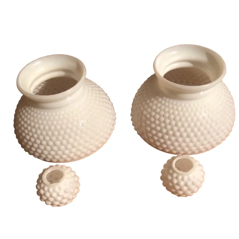 These can go to various light fixtures. The bottom is 6” across and and about 4-1/2 across top. I have same ones posted but the top is tulip shaped. No chips or cracks.