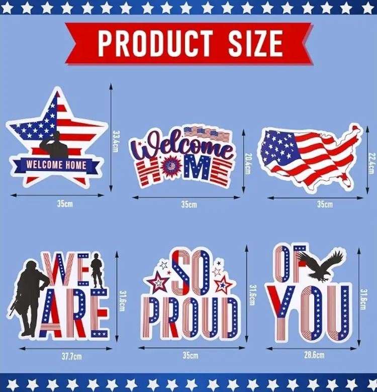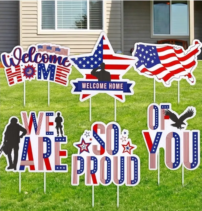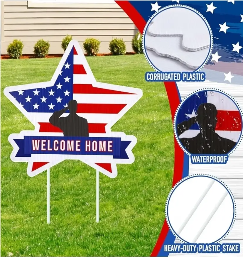 Each package contains six uniquely styled welcome home yard signs, providing a variety of design options to suit your preferences and enhance a patriotic theme. These signs are constructed from corrugated plastic, making them both lightweight and robust. Their waterproof design ensures durability and resistance to adverse weather conditions, including heavy rainfall or snow, maintaining their pristine appearance over time.