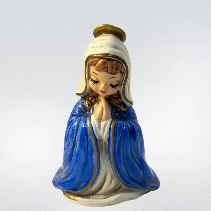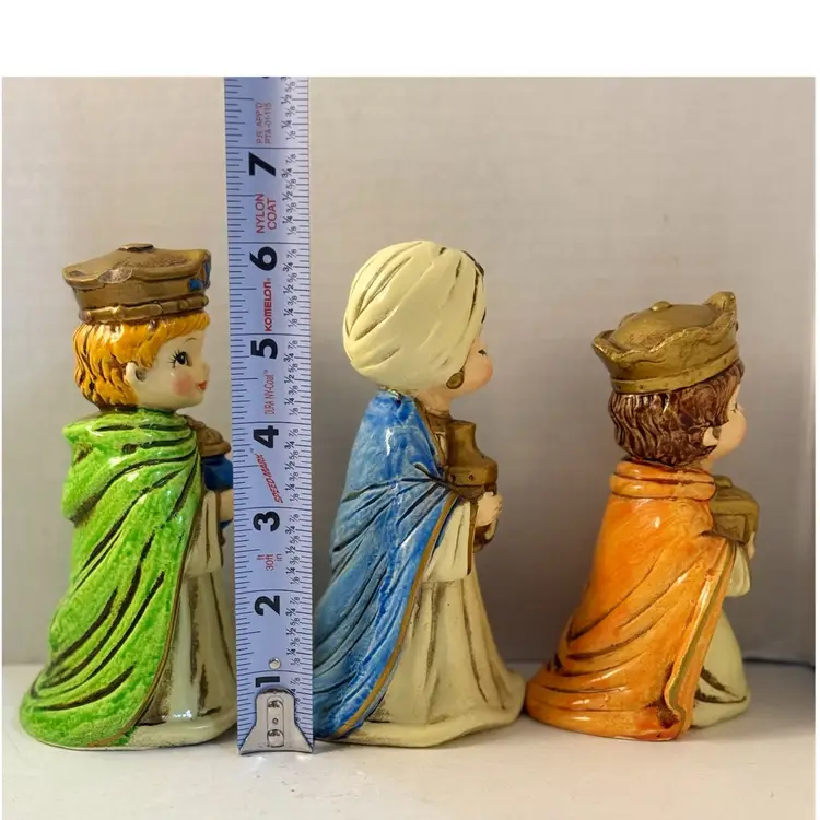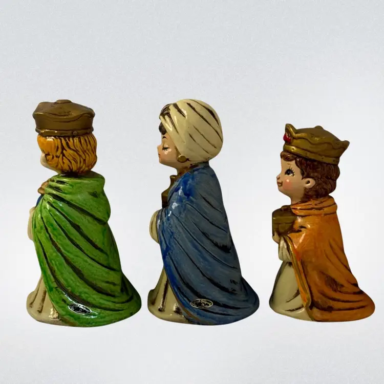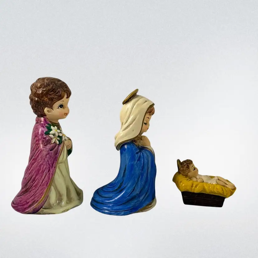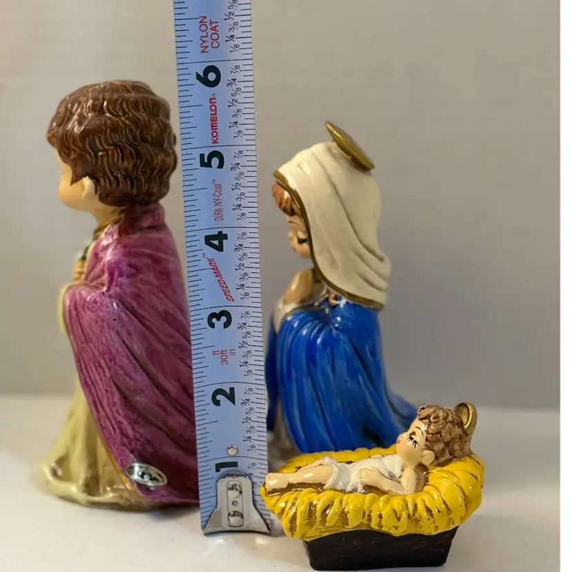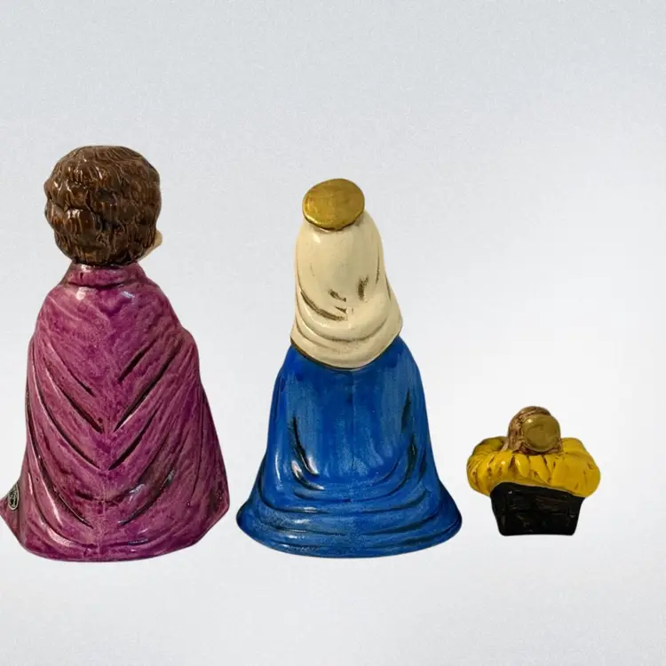 Condition: All have the Japan label, four out of six have the Josef Original label. The green felt on the bottom of one is peeled back. Baby Jesus has some paint loss on the bottom. No other condition issues noted.