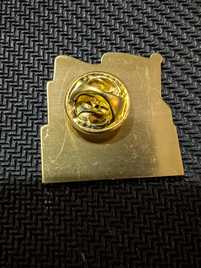 This commemorative pin features the American flag waving over a silhouette of the New York City skyline with the date 9-11-01. It's a meaningful piece to honor and remember the events of September 11, 2001. The pin is in excellent condition with no visible wear. Perfect for collectors or as a tribute piece. Piece is approximately 1 inch by 1 inch.