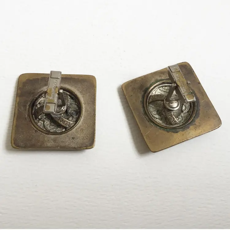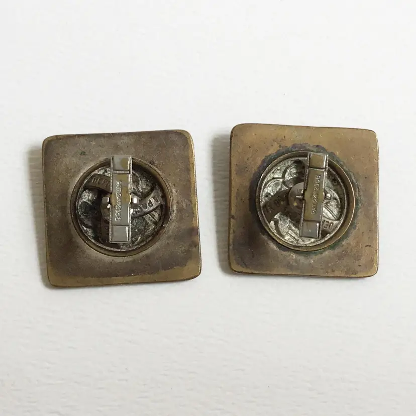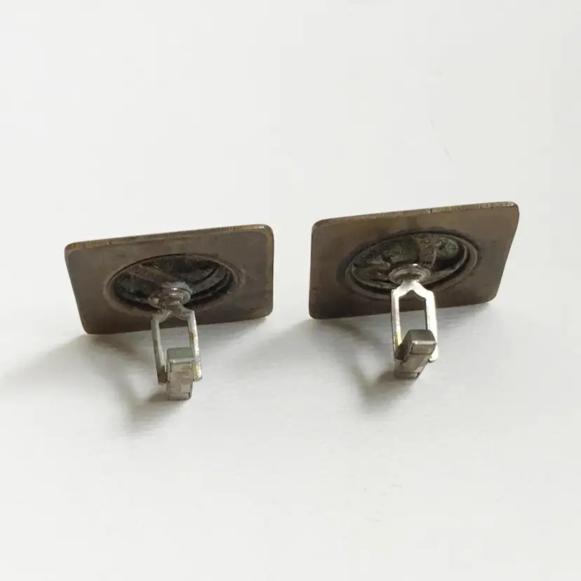 In good preowned condition. There is some loss to the brass tone on the back of the cufflinks.
