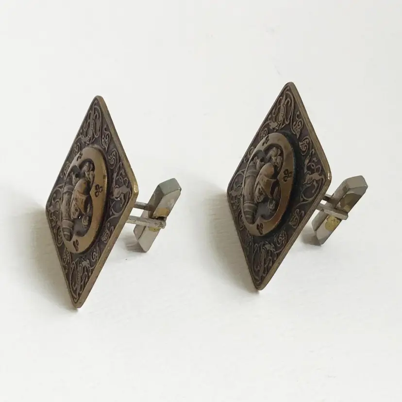 A.P. & Cie Albert Parent King Arthur Knight Soldier Brass Tone Cufflinks France