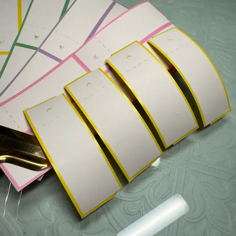 100 (20 of each color - lavender, pink, orange, red & yellow) perforated, unprinted, thermal, clothing tags. These are lightweight card. Fun for tags, tucks and embellishing for homemade ephemera. Leave them together for belly bands and page-length side tucks in your journal projects or explore new uses. The rainbow of possibilities are endless!