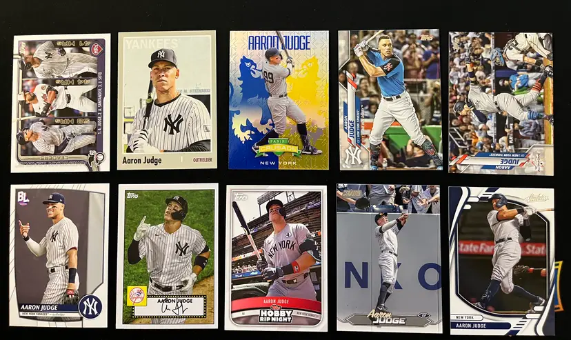You are bidding on a lot of 10 Aaron Judge base and insert baseball cards.