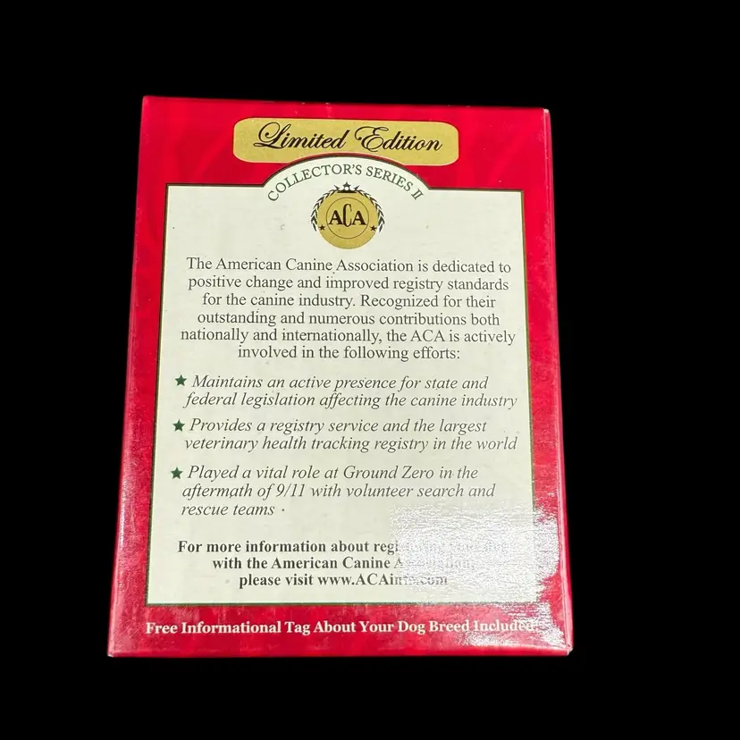 The ACA Collector's Series II Bichon Frise Ornament is a limited edition collectible perfect for dog lovers and collectors alike. This ornament features a beautifully crafted Bichon Frisé design, making it a unique and charming addition to any holiday decor or collection. The high-quality materials used in its construction ensure durability and long-lasting enjoyment for years to come.