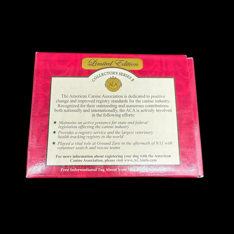 The ACA Collector's Series II Yorkshire Terrier Ornament is a limited edition collectible perfect for dog lovers and collectors alike. This ornament features a beautifully crafted Yorkie design, making it a unique and charming addition to any holiday decor or collection. The high-quality materials used in its construction ensure durability and long-lasting enjoyment for years to come.