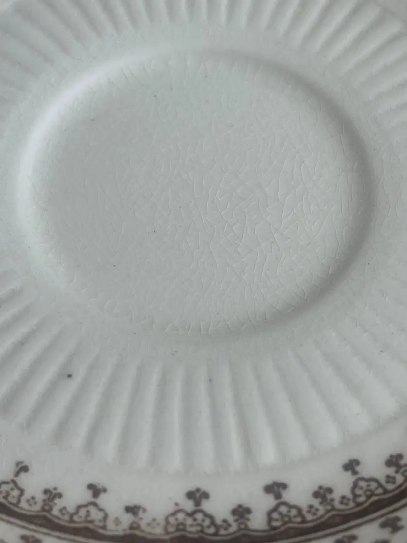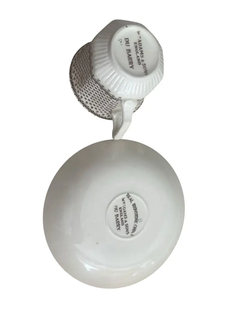 Small cute cup & saucer No chips or cracks - a little bit of crazing on a plate and bottom of the cup Cup is about 2.5” tall 2.75” in diameter Saucer is 5” in diameter