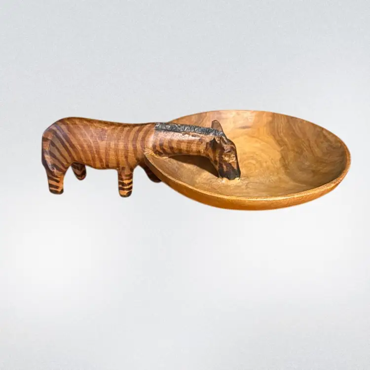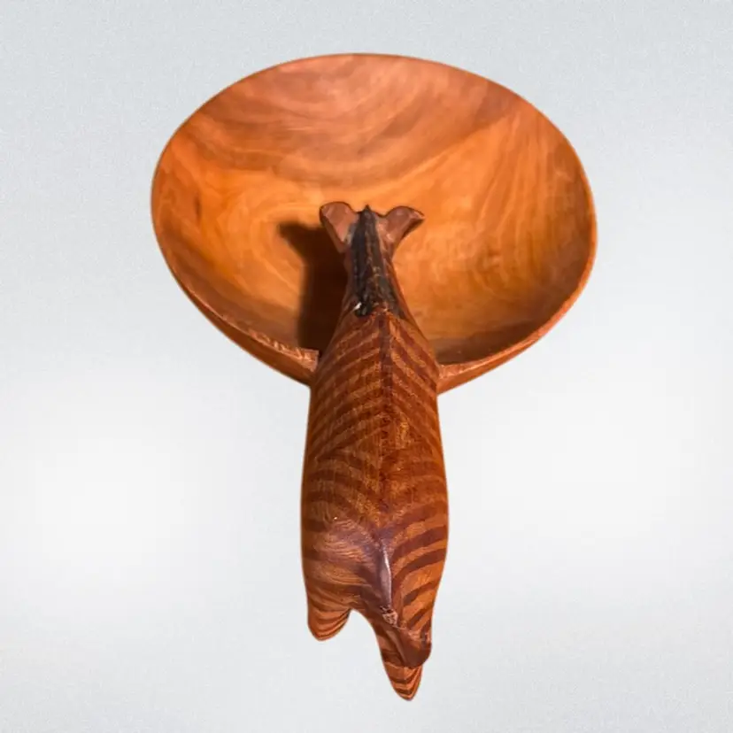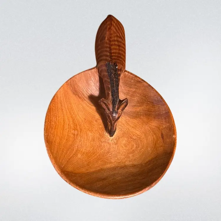 8” long. 5” bowl. 2” tall. Hand carved and painted.