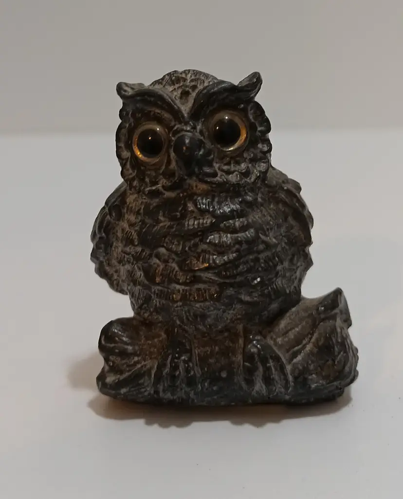 Adorably spooky soapstone owl figurine; Just in time to add to your Halloween Decor! Look at those eyes! 2.5" T x 2" W; Excellent Condition! Original label; No chips or cracks.