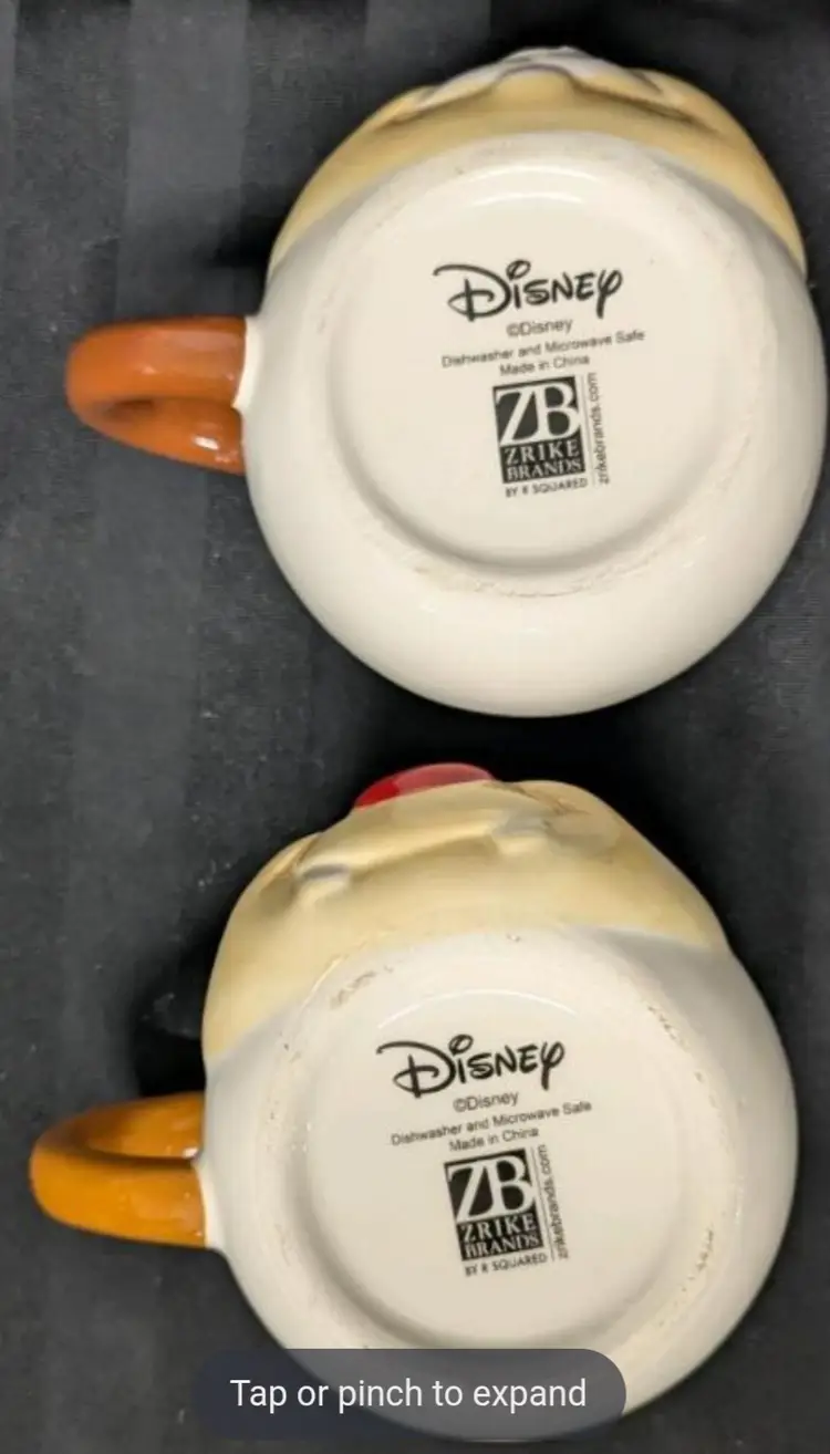 Adorable Pair Disney CHIP & DALE Ceramic Character Coffee Mugs, 4" Tall, No Chips or Cracks