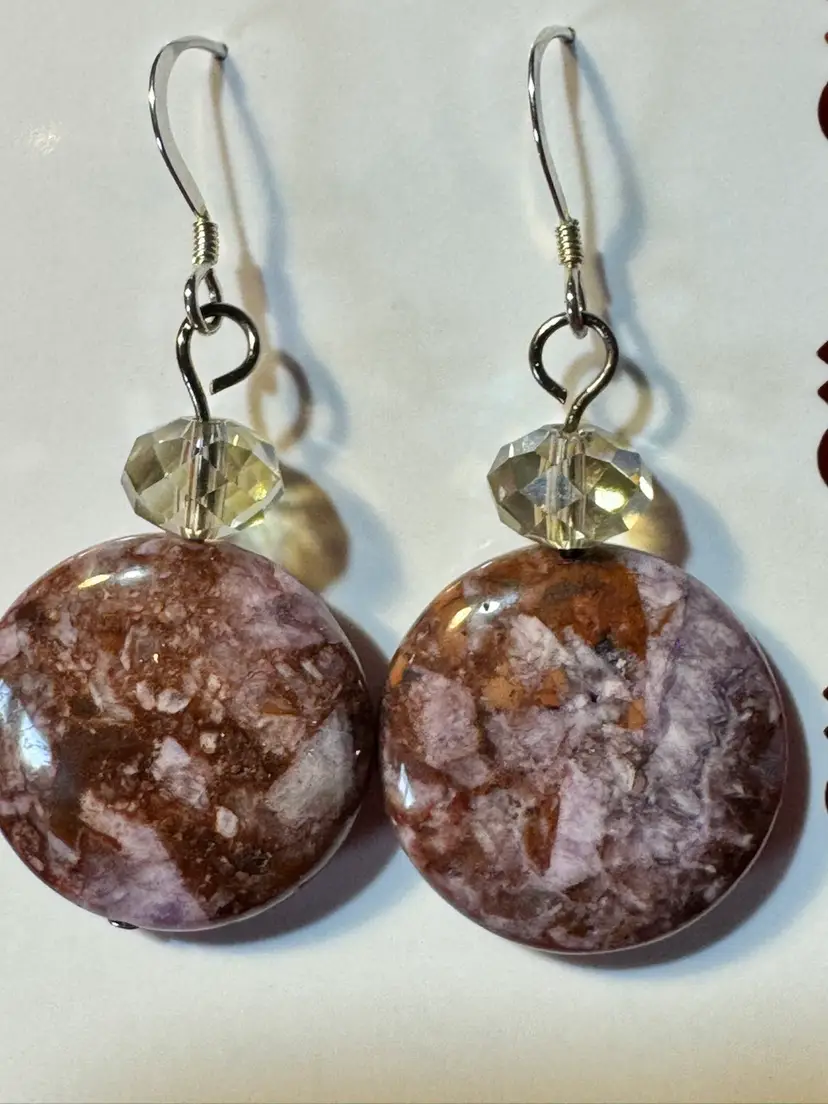 Materials: Multi color Agate, iridescent, crystal bead and .925 earwire.