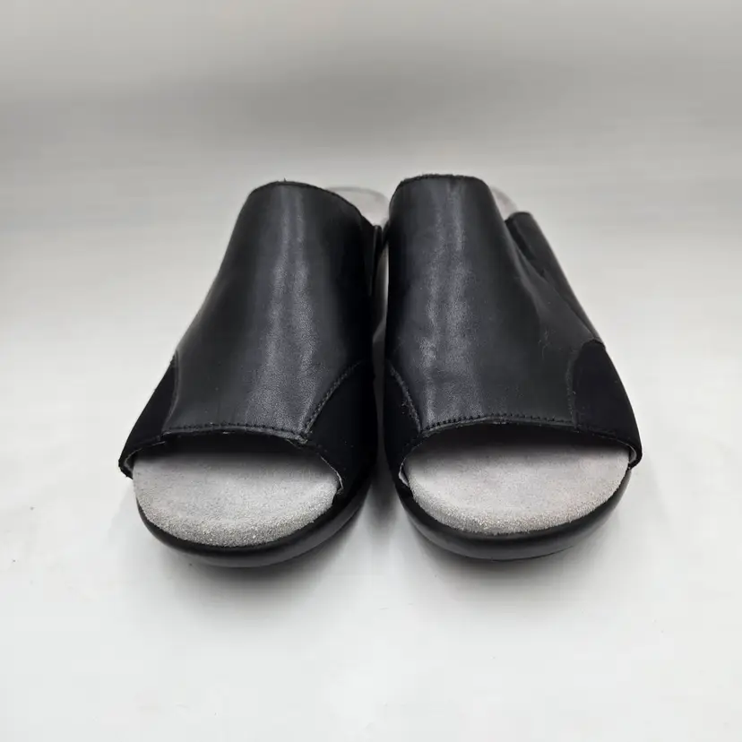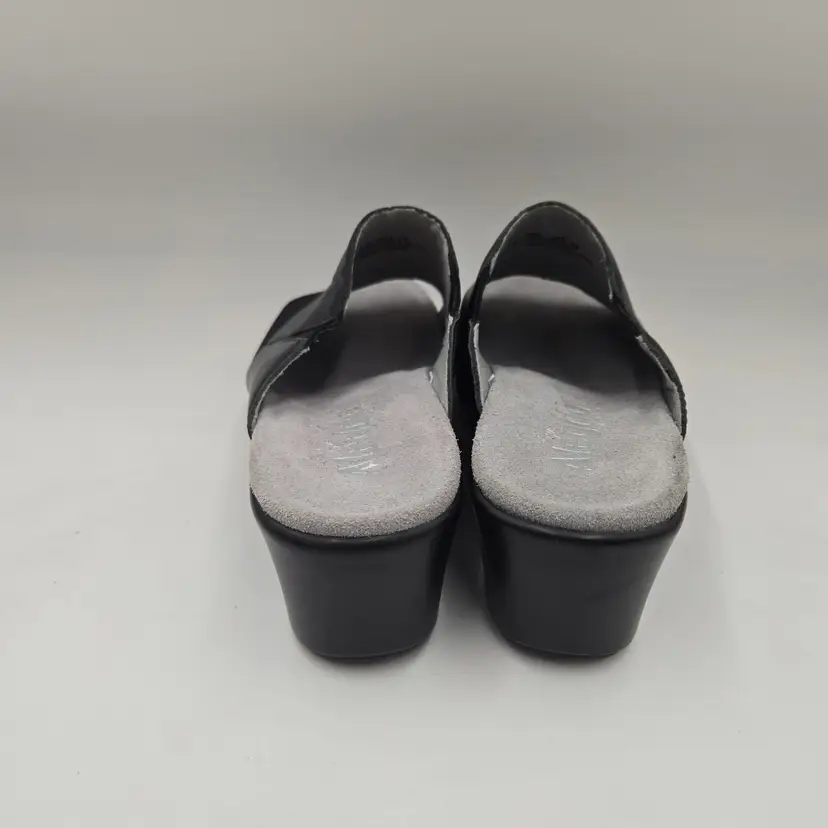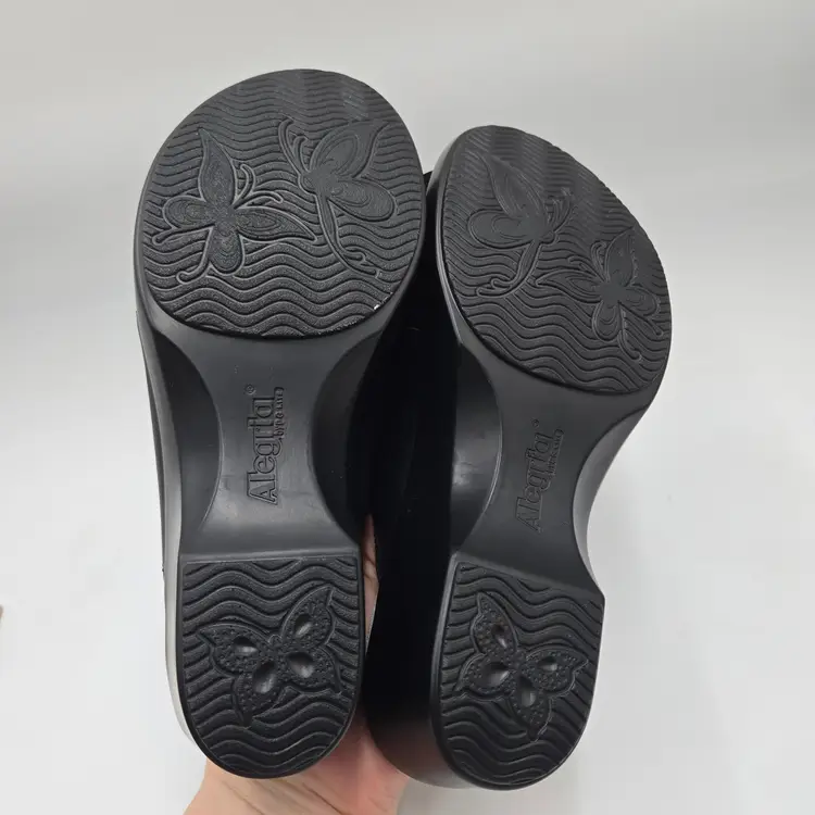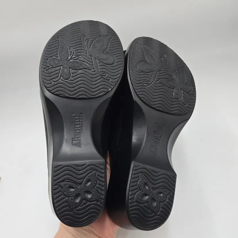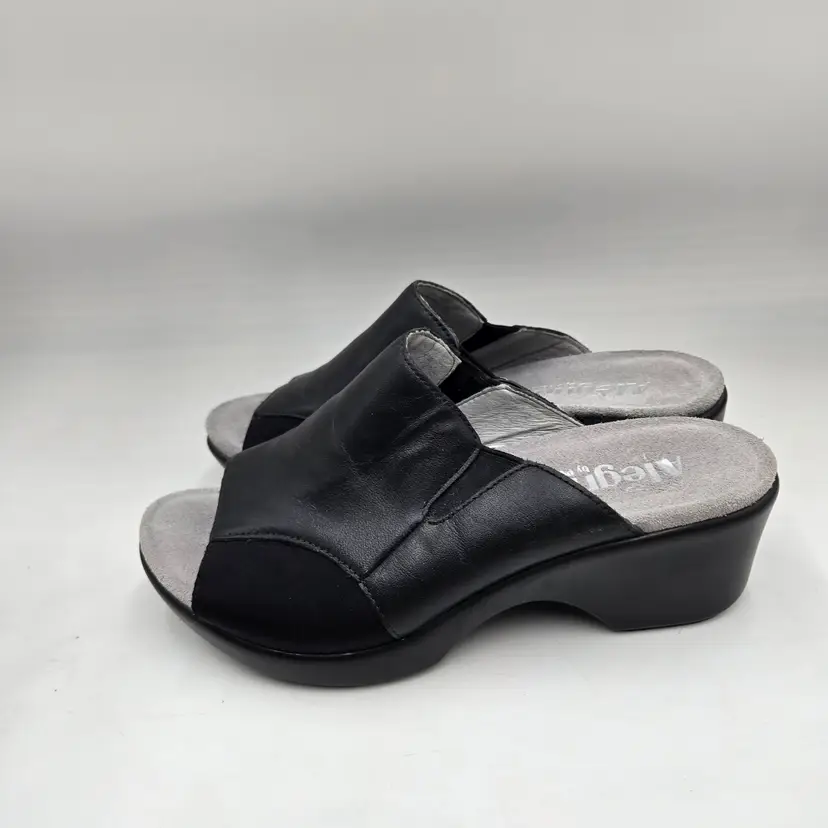 Alegria Ryli Tile Me More Sandals Slide Heel Wedge Black Leather Womens Size 38