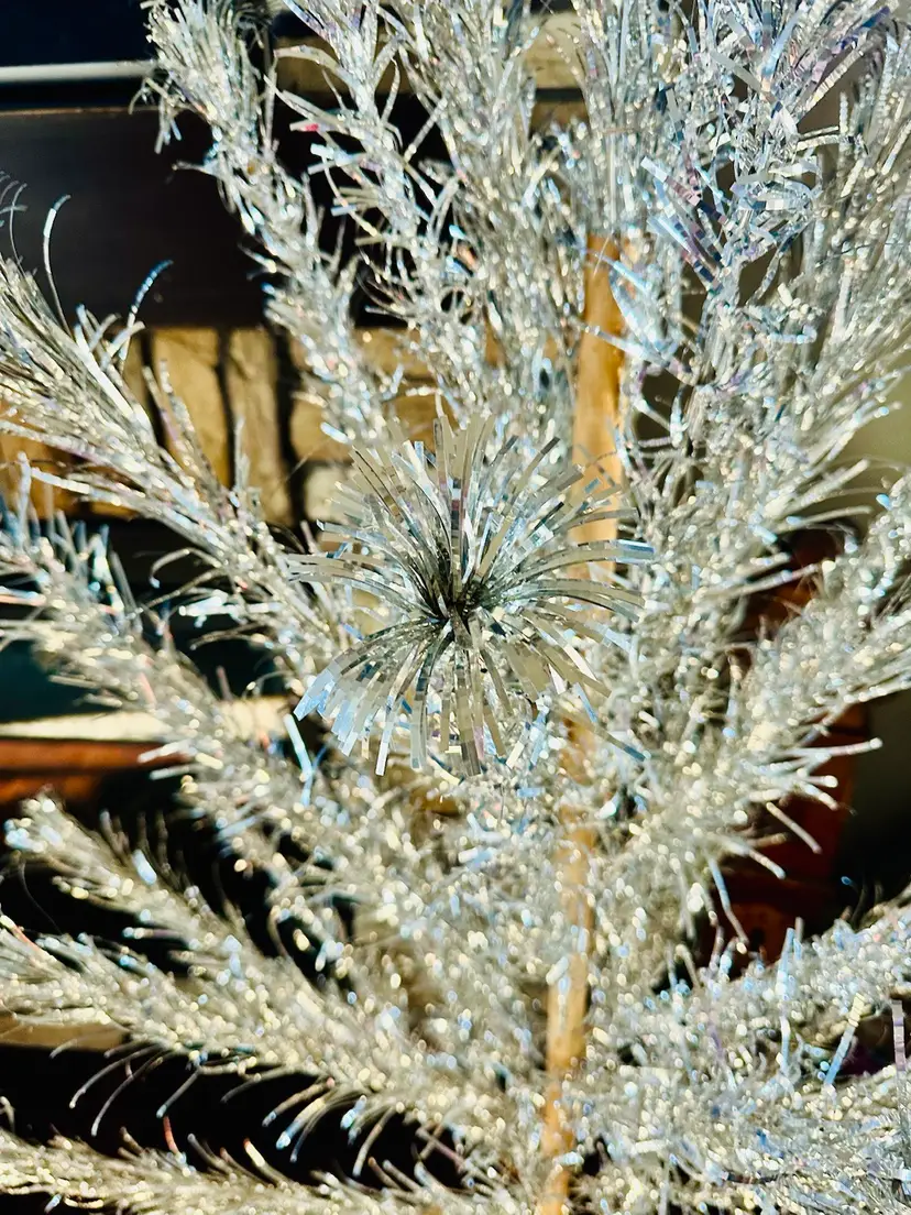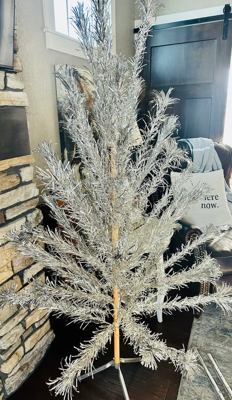 This 42 branch Pom Pom Christmas Tree is stunning in every way. It comes with the original silver wraps for the trunk and the base. This one did not come with the protective tubes but the branches are in beautiful condition.