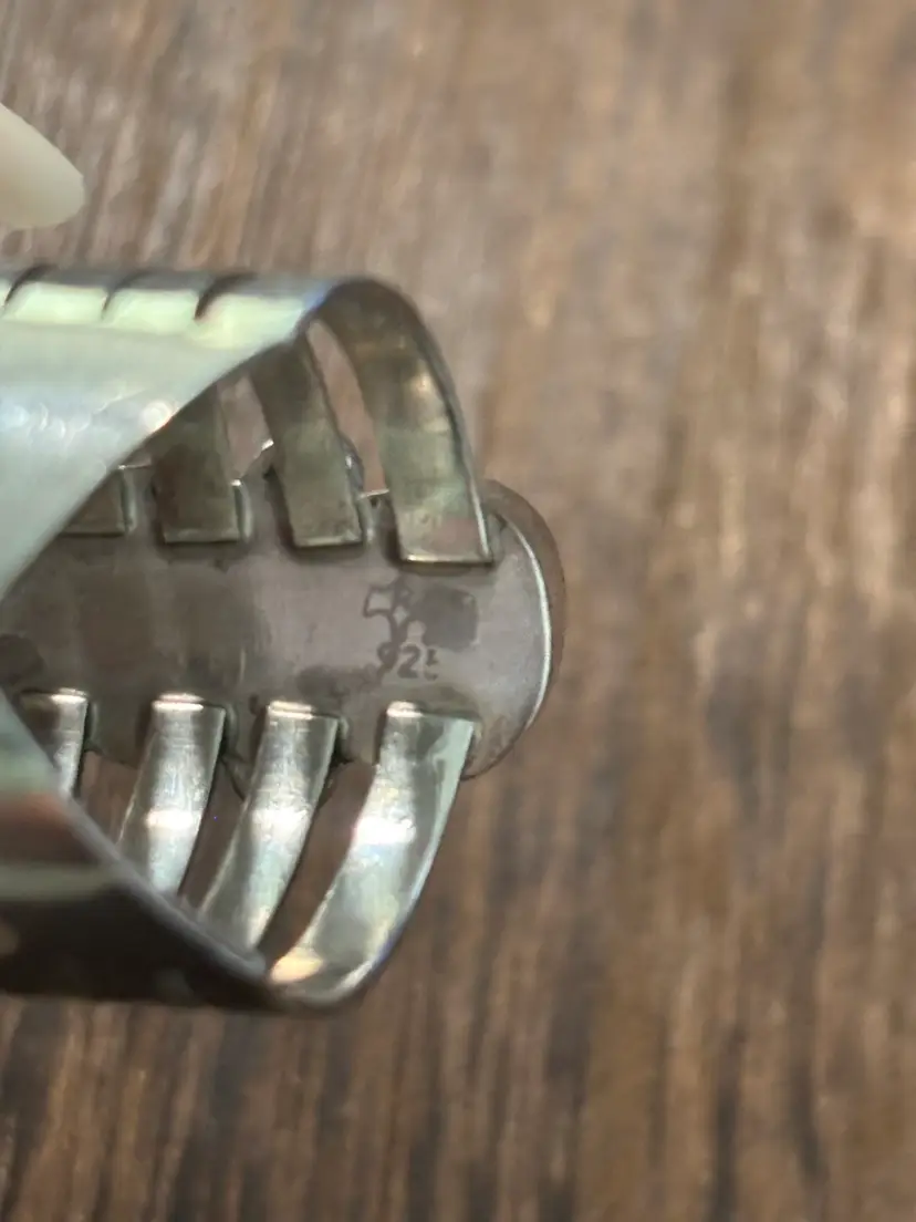 Sterling silver and turquoise size 9.5 ring. It’s 1 1/4 “ and shows a makers mark.