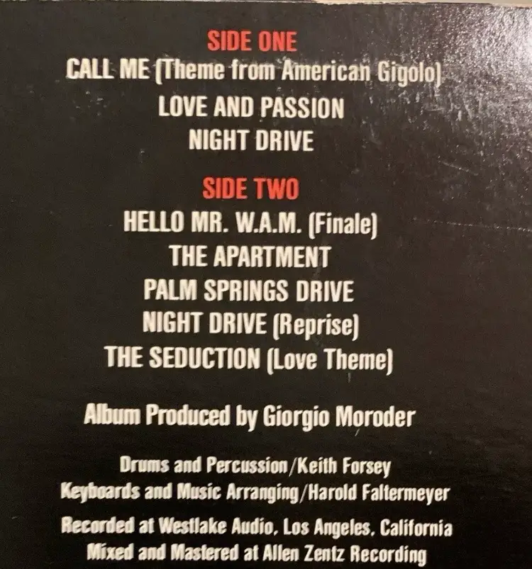 American Gigolo Original Motion Picture Soundtrack, 1980 LP, Cover and sleeve are definitely worn, but I was not alive yet. I would say very good shape for the age. Record itself is excellent.