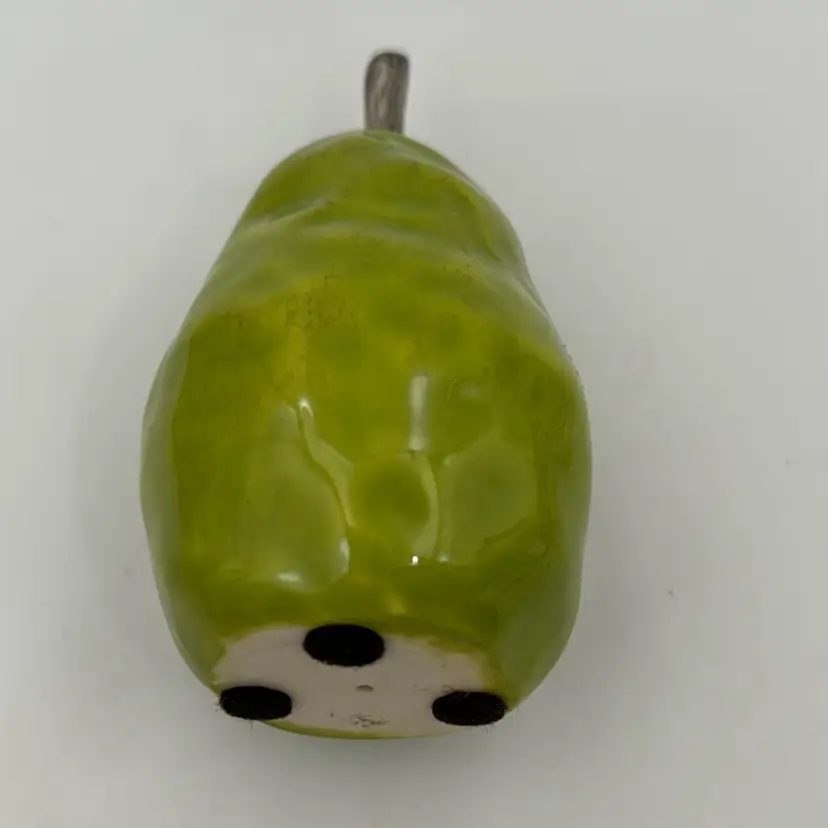 51/4”T 21/4”W no chips cracks or breaks. The pear rattles in wonderful condition.