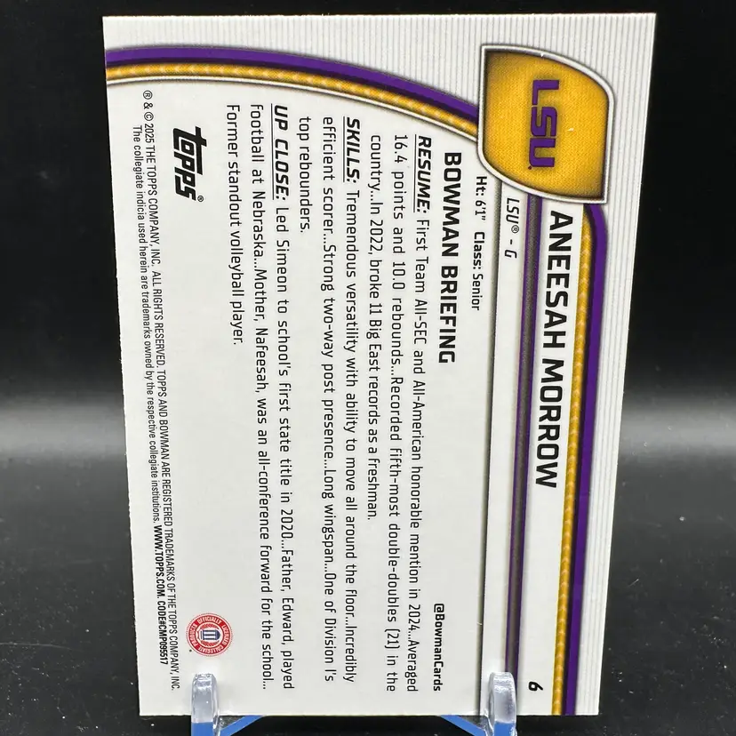 Aneesah Morrow Purple /100 2024-25 Bowman Chrome U University Sapphire #6 LSU
