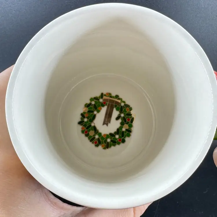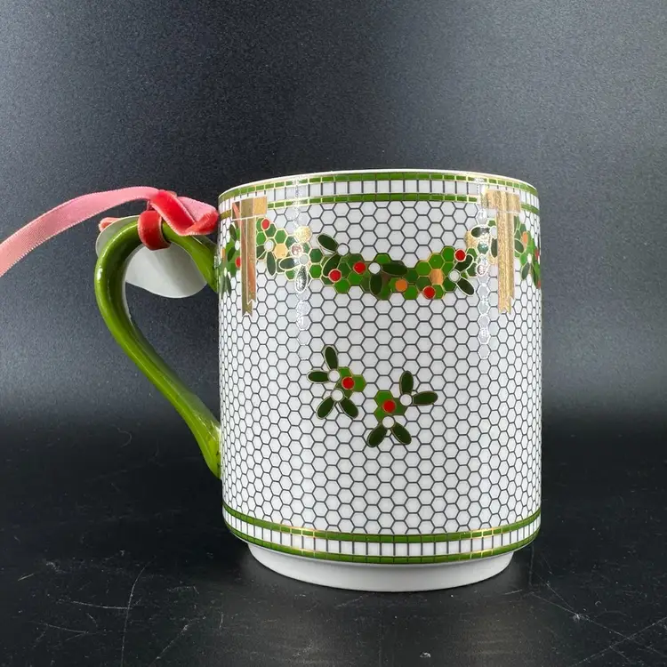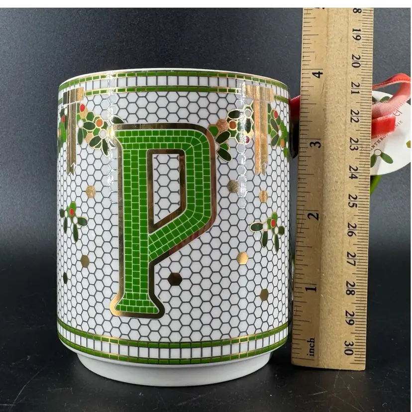 This Anthropology Letter P Christmas Mug is approximately 4” in height. There are no chips or cracks on it. Also it is marked Anthropology on it.