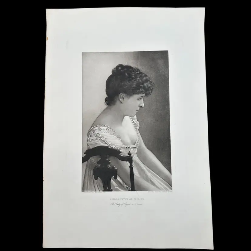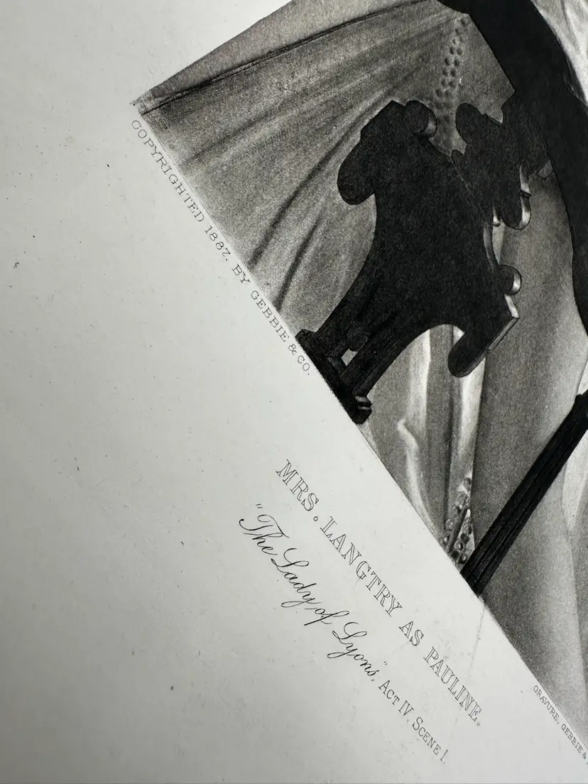 A scene of a beautiful woman from the 1880s portraying “Pauline” in “The Lady of Lyons” Act IV Scene 1 production.