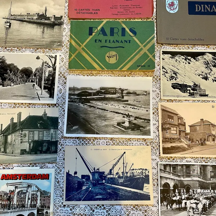 Lot of Antique and Vintage Postcards 19 single postcards 3 postcard books 3 postcard sets Include scenes from London Bridge, France, Piccadilly Circus, Denmark 1926, Puerto Vallarta, Notre Dame Cathedral, Changing of the Guard, London, Cherbourg, Brussels postcard book, Liege postcard book, Paris postcard book, North Superior Shore Canada set, Amsterdam miniature set, Paris miniature set, and more. Only one card was posted. 0001025