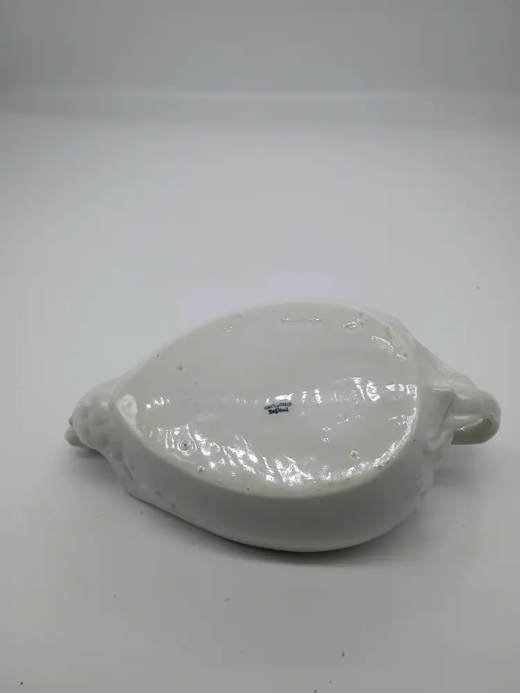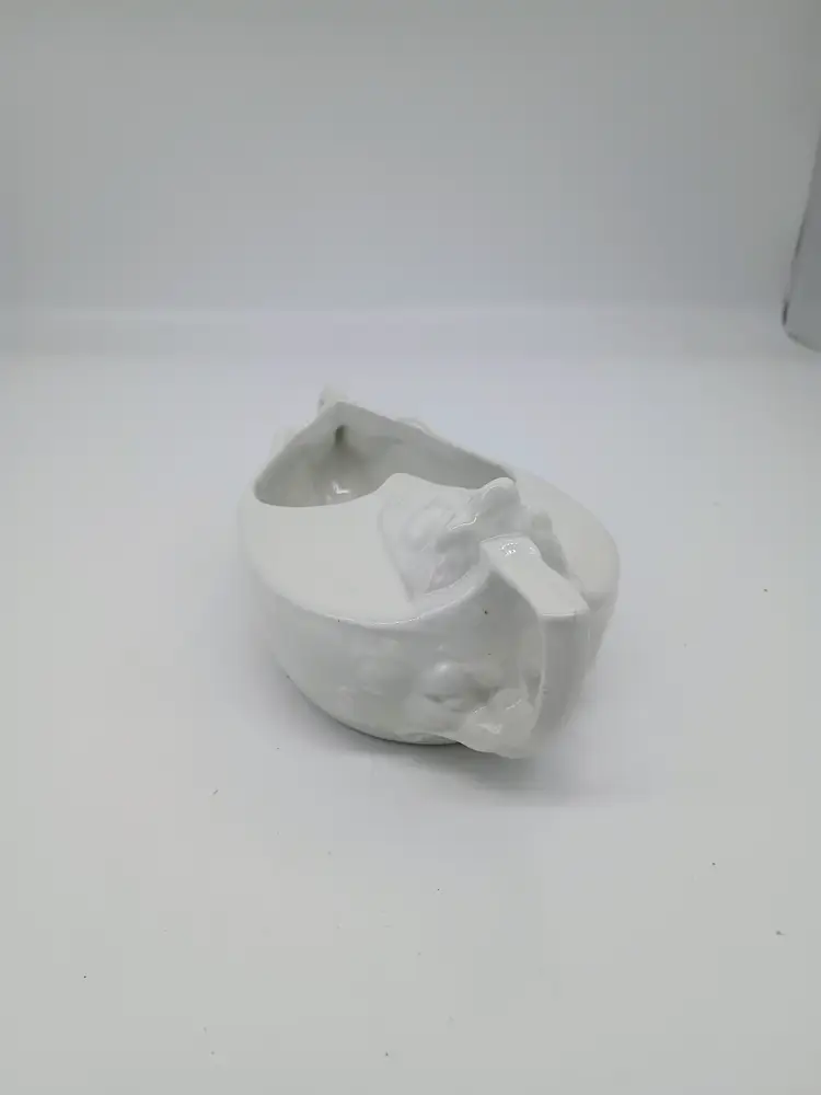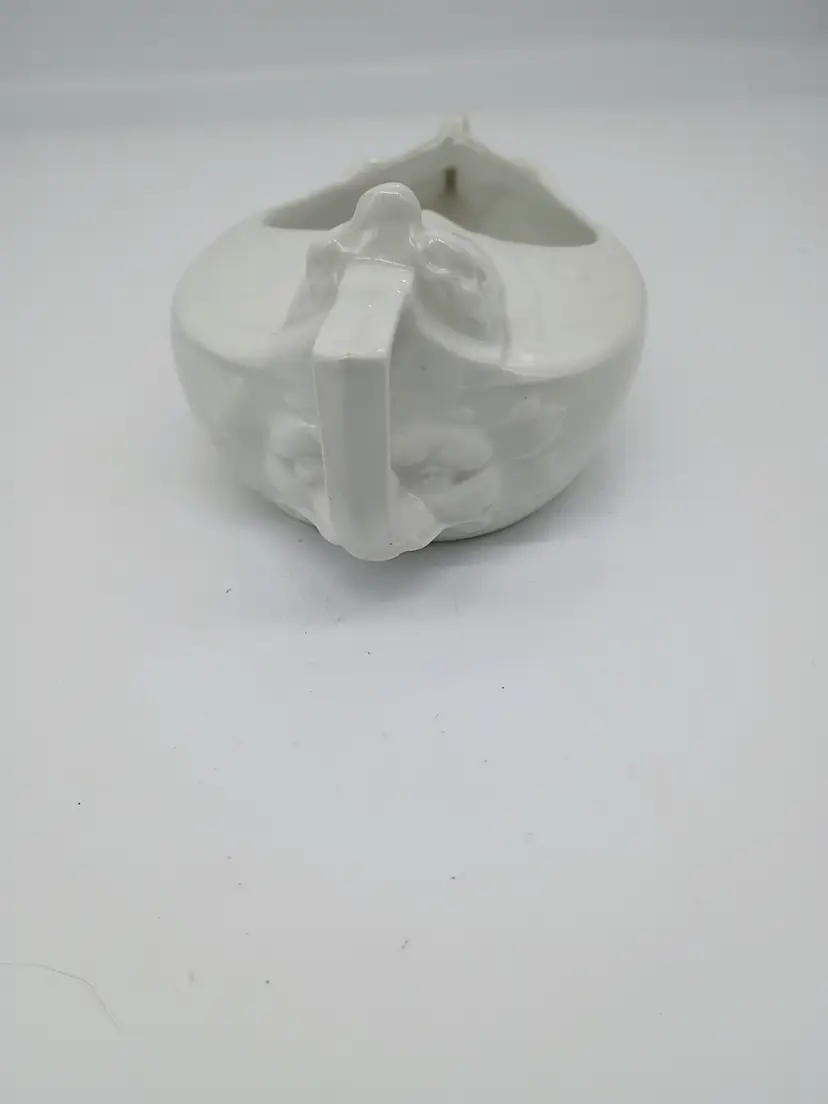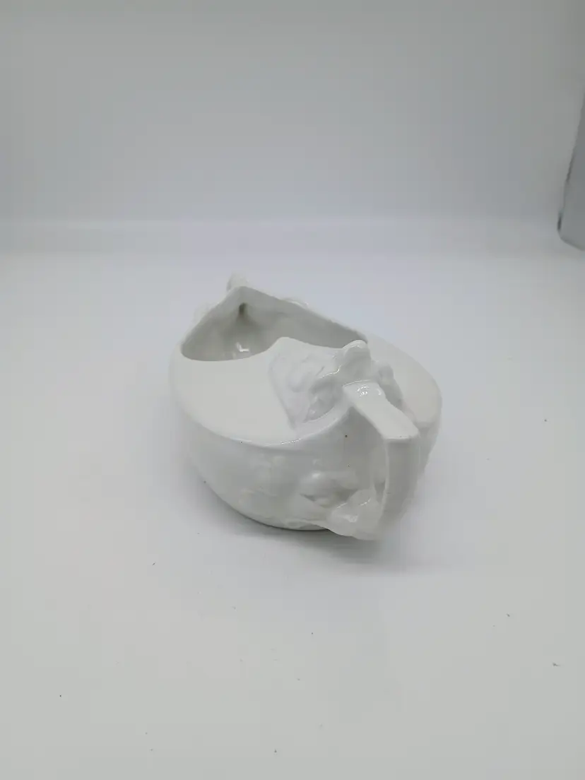 Rare Unique Antique Cauldon Pottery Figural Sauce Boat Gravy Boat Alter Bowl. Swan Spout and Mans Face on Handle and body of dish. This is 3 inches tall, about 2.5 inches deep, 8 inches long and 5 inches at widest point. This is Art Deco /Greek Revival/ Celtic in design depending on how you read the symbolism, It could be Zeus in his forms of Swan or The Greenman and Swan ( Celtic). There are no chips cracks or flea bites, slight crazing no discoloration. Excellent condition. I can't find the name of this pattern but it is very old and really unique I can't find another one anywhere exactly like it. I did find a single tea cup that was dated from same time period and year but they didn't have a pattern listed circa early 1900's. Ships USPS domestically and UPS worldwide