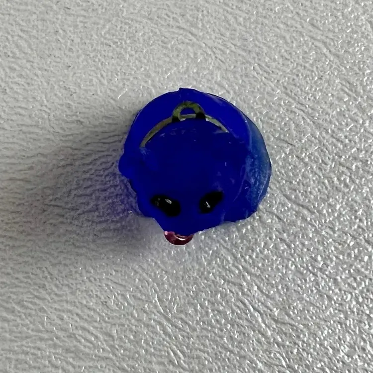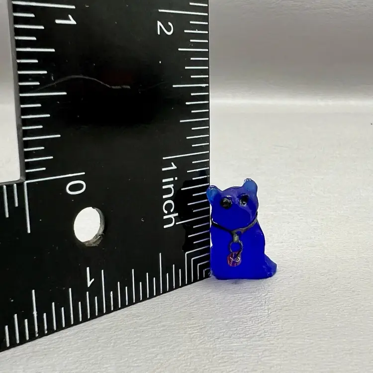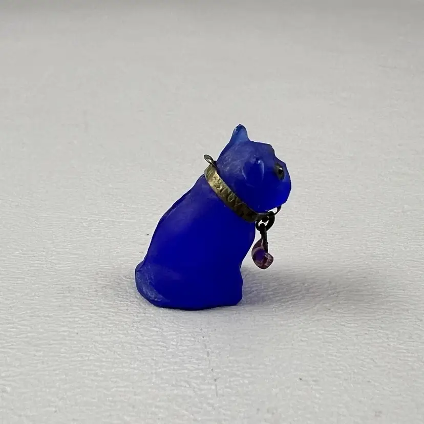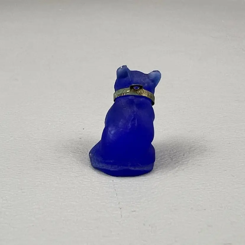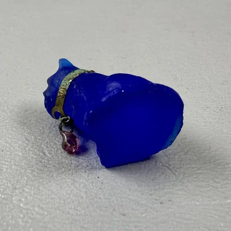 Antique Czech Glass Cobalt Blue French BullDog Dog W/ Collar Cracker Jack Charm