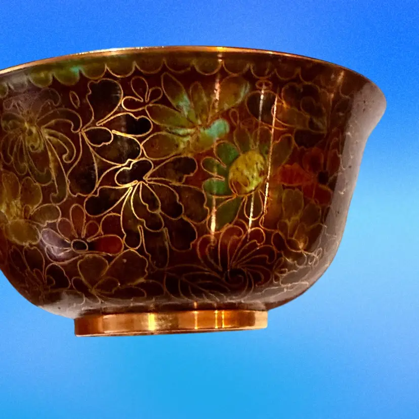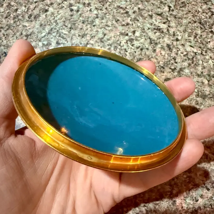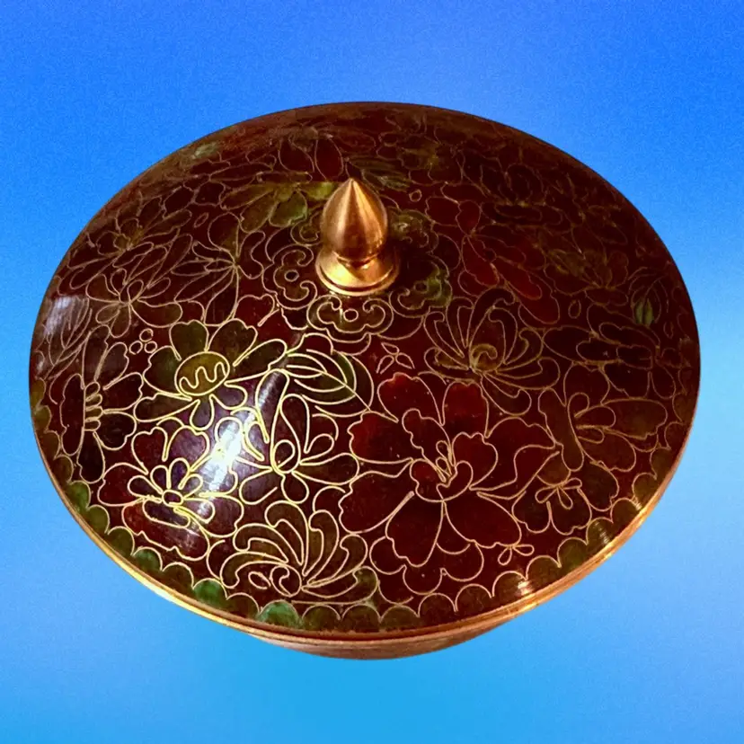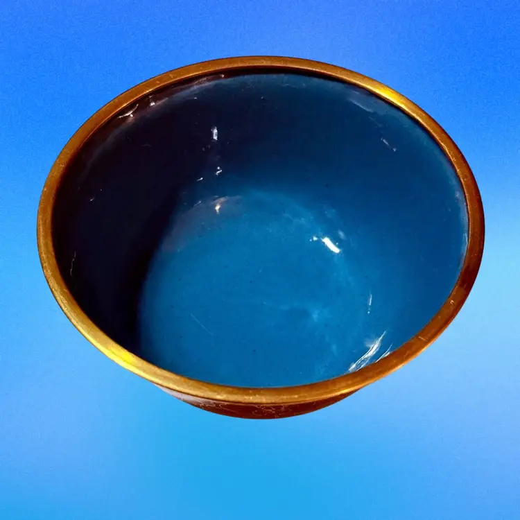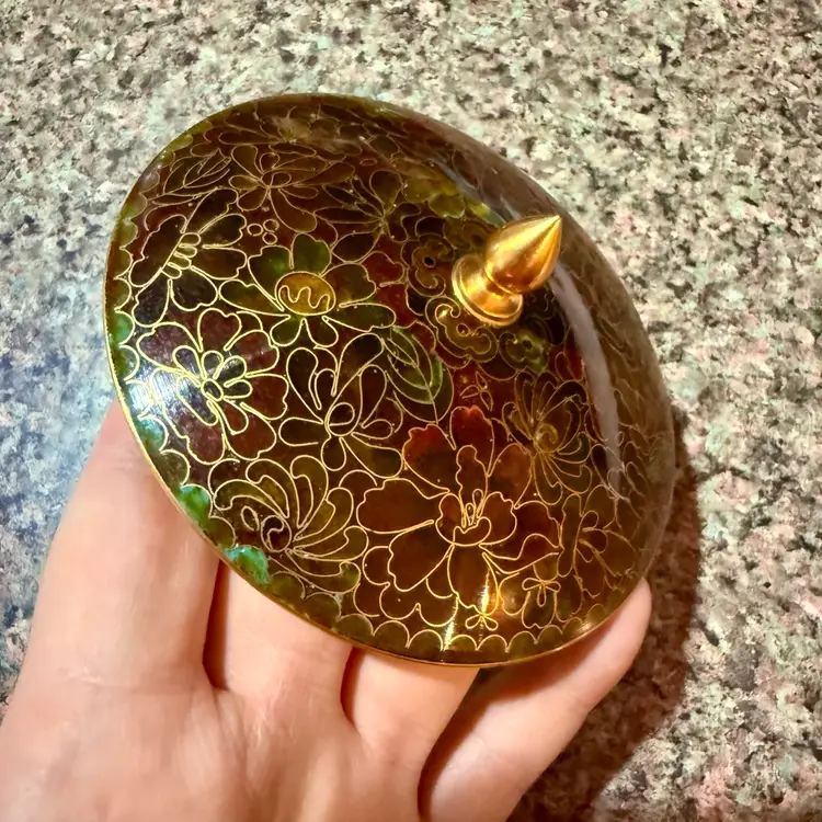 Approx 4-1/8” wide at mouth x 3.5” tall to top of finial; unmarked; good condition; no issues.
