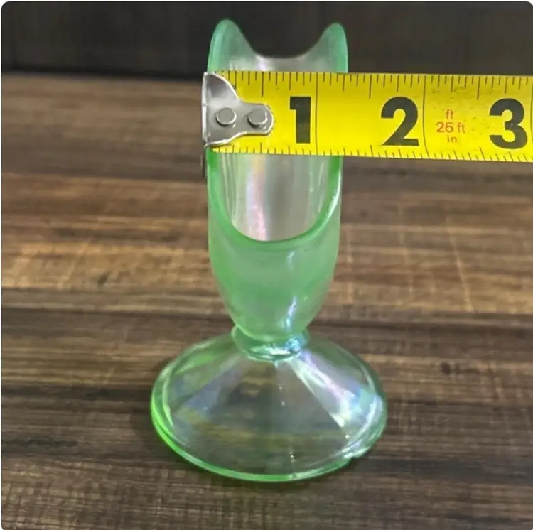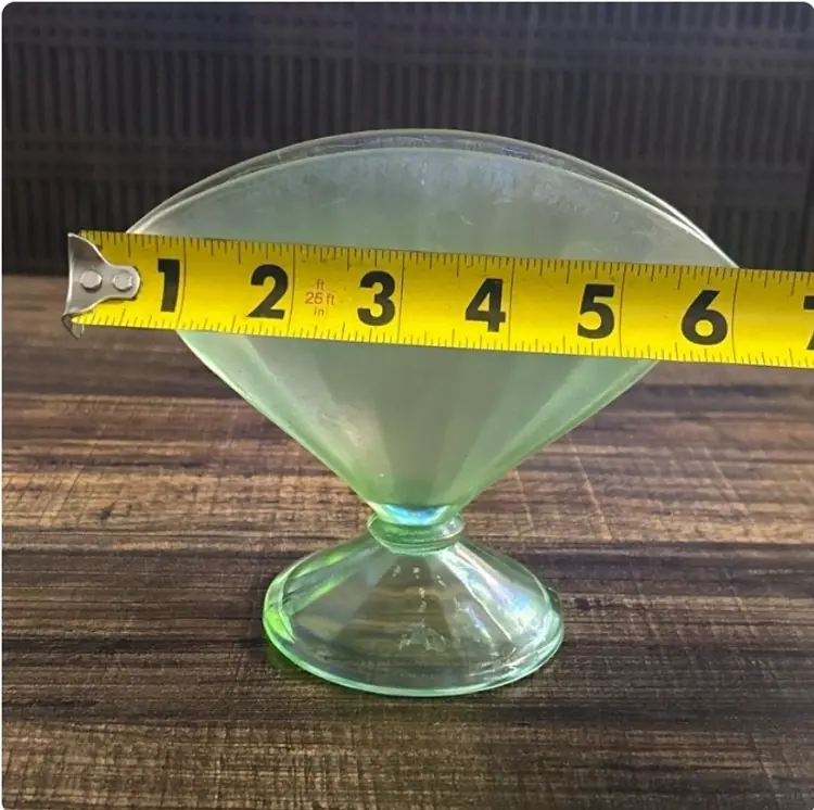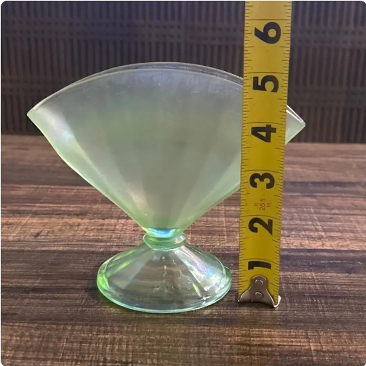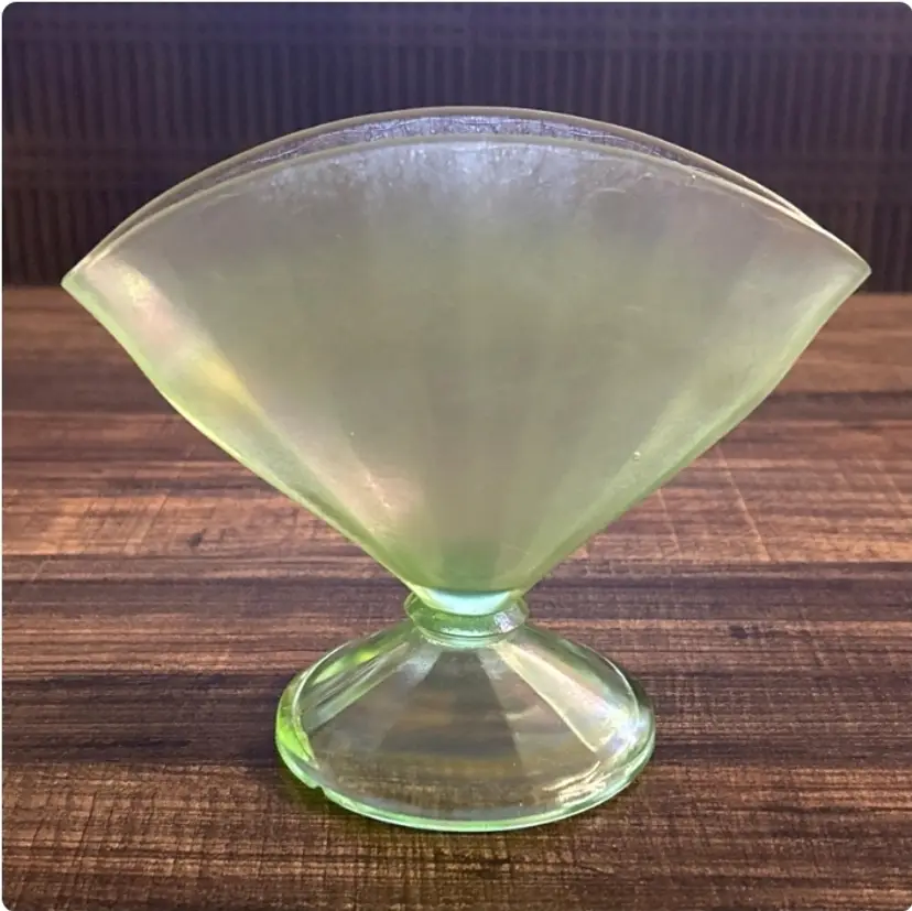 Antique Fenton Uranium Stretch Glass Fan Vase As Is