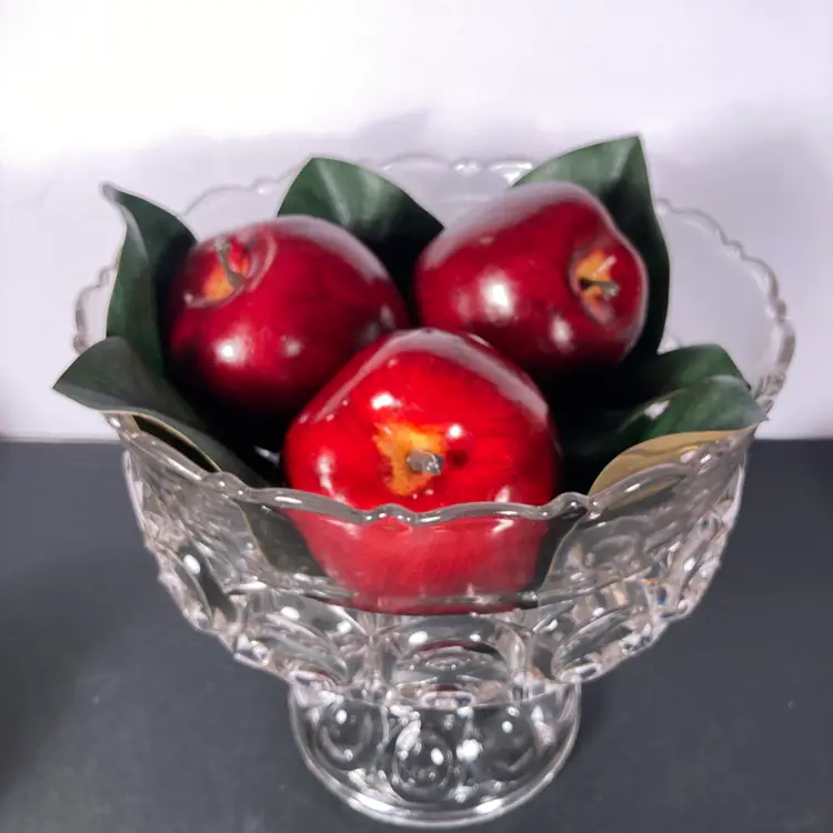 Perfect for displaying little pumpkins, apples or other fruit, or Christmas ornaments. I noticed a small inclusion in the glass wall of the bowl and another short indent to the interior of the bowl inner surface and included images.