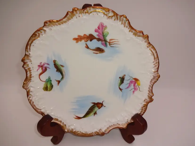 An Antique (1890-1910s) Limoges - AK (Alfred Klingenberg) Fish Plate (stand not included).