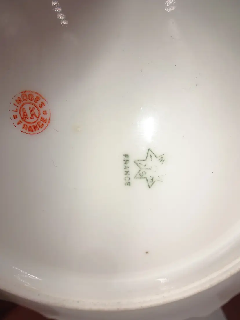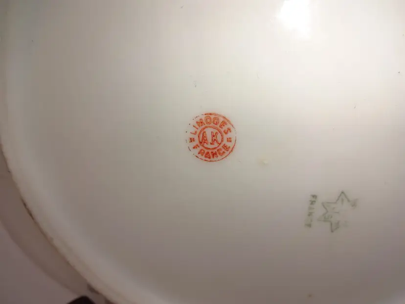 Good to very good pre-owned condition. A round plate with gold tone trim featuring four ocean fish, one jellyfish, and seaweed/sea plants. Made in France. It is approximately 9" x 1-1/4". No chips, cracks or stains. Manufacturer's flaws.