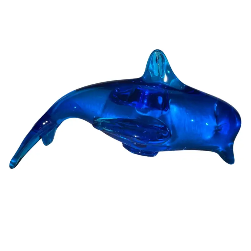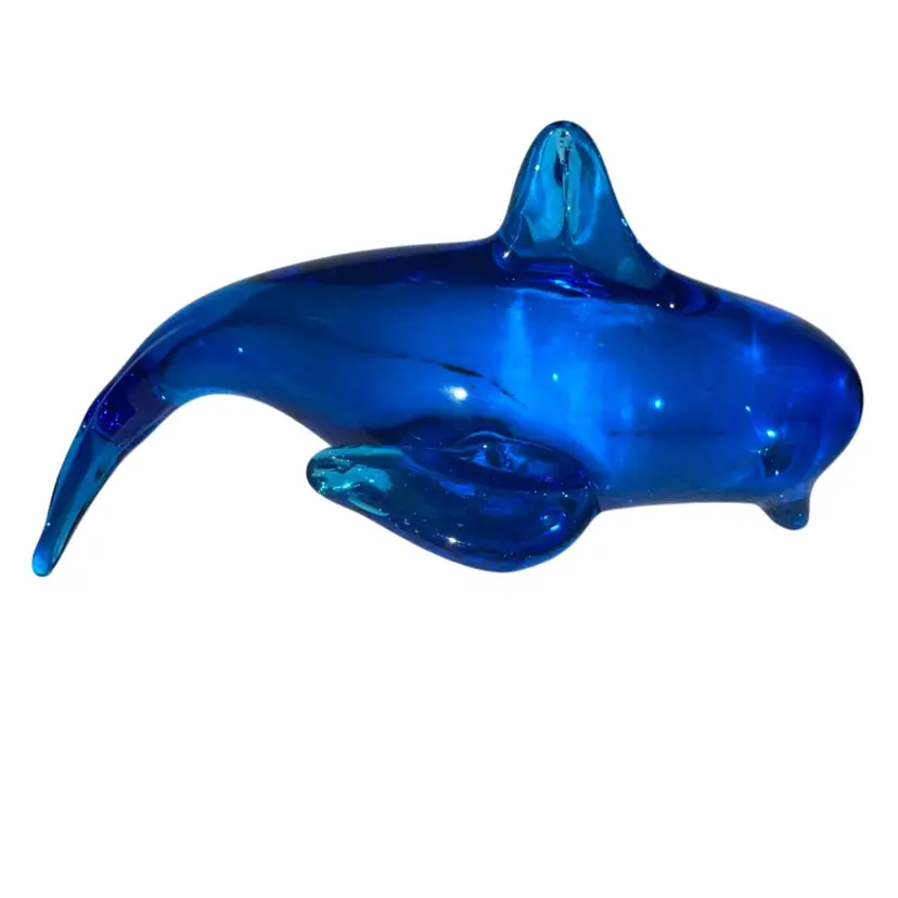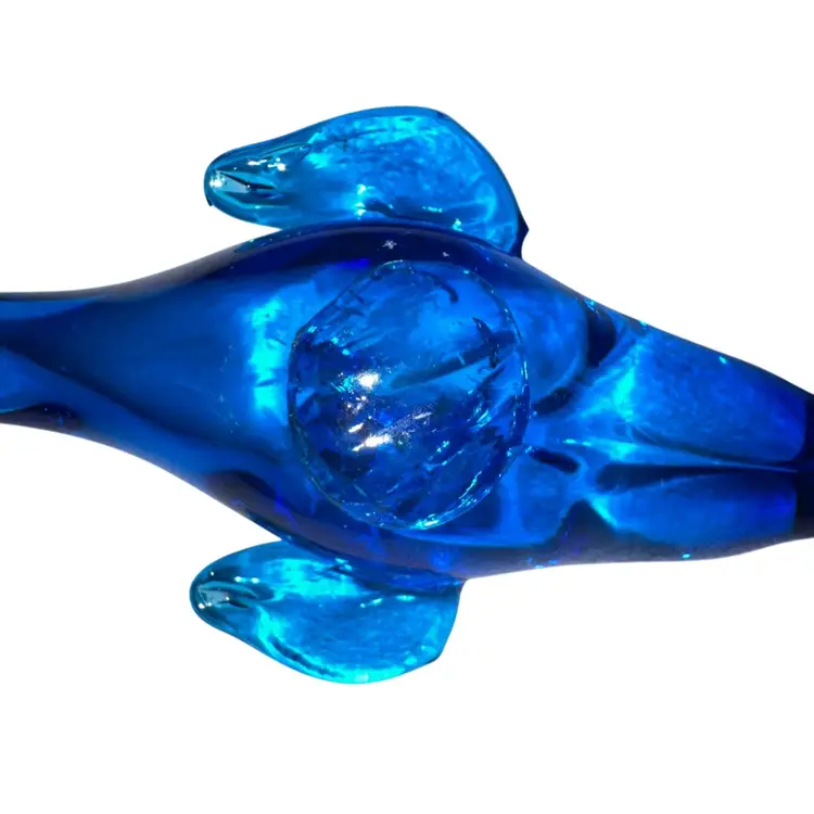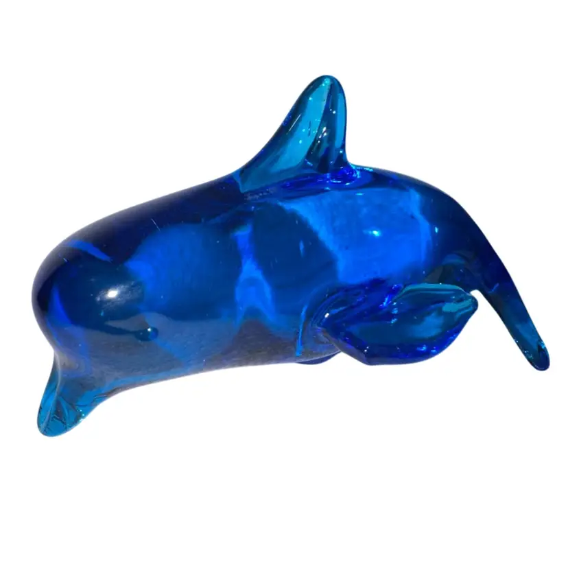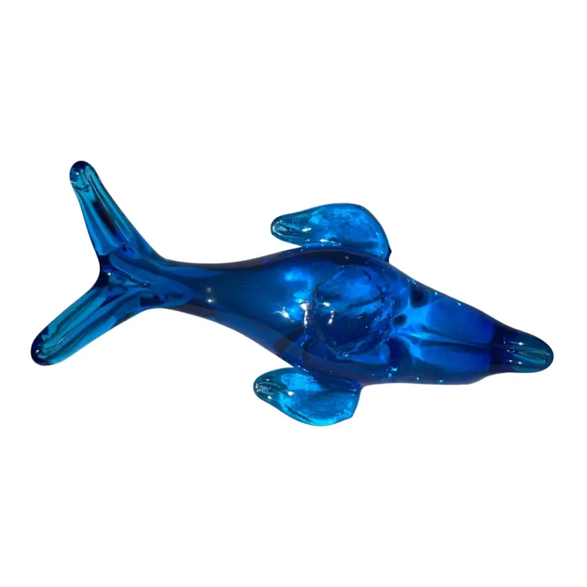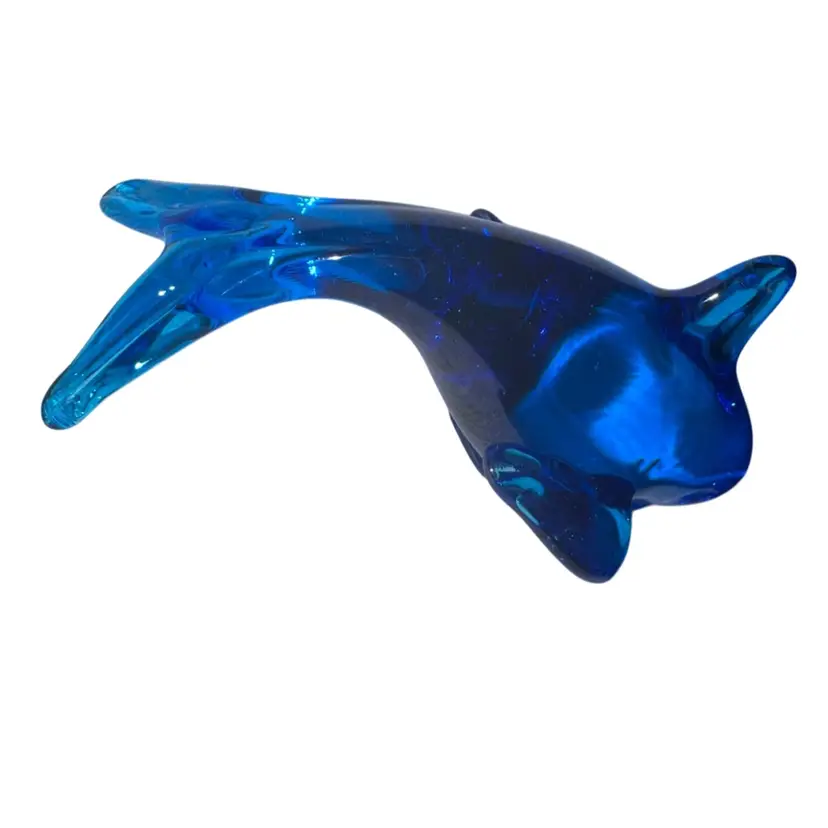 Art Glass Blue Hand Blown Dolphin 3.25” Tall X 6” X 3” Great condition - no issues Lumpy pontil marl