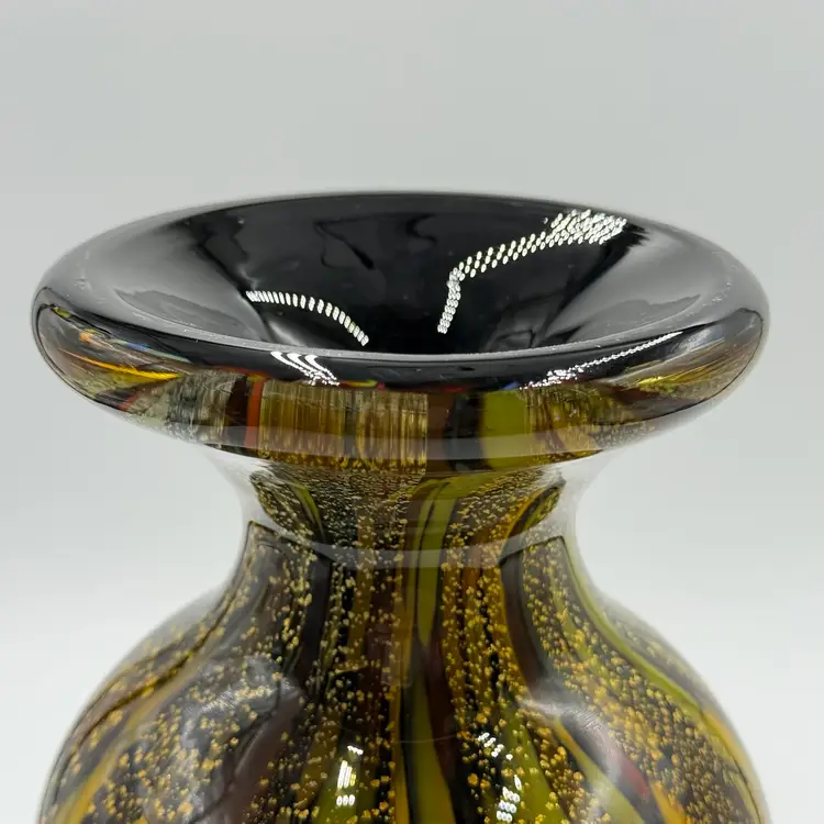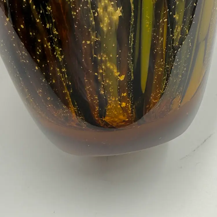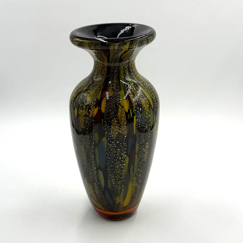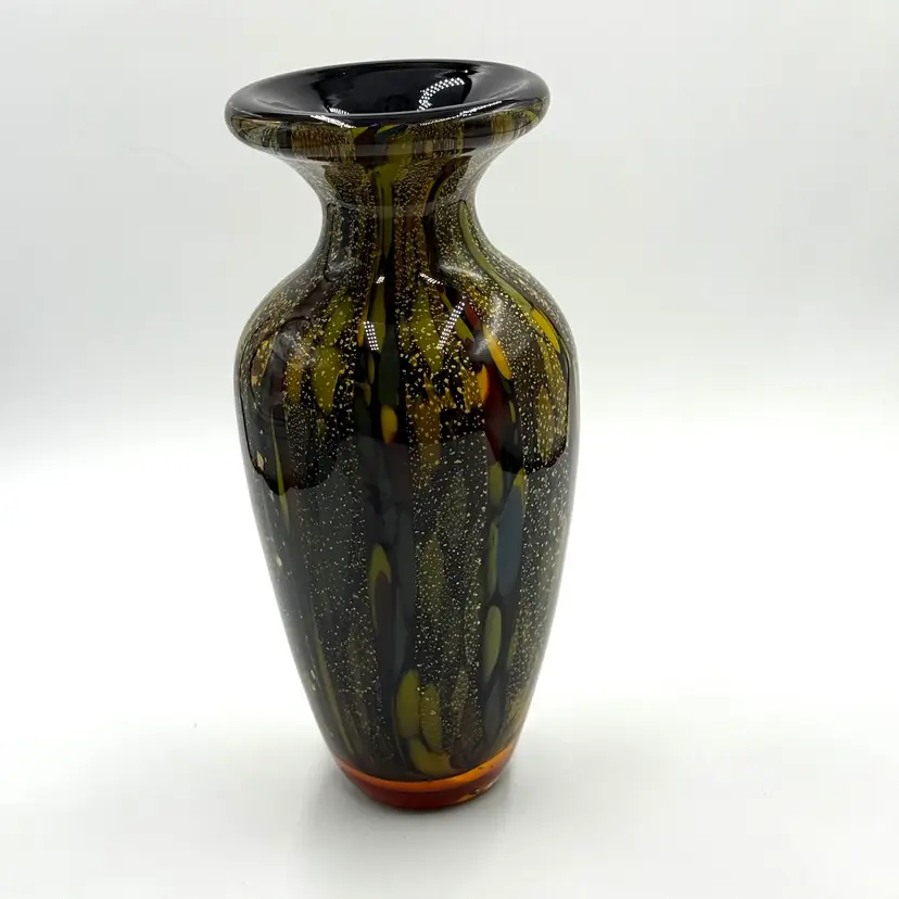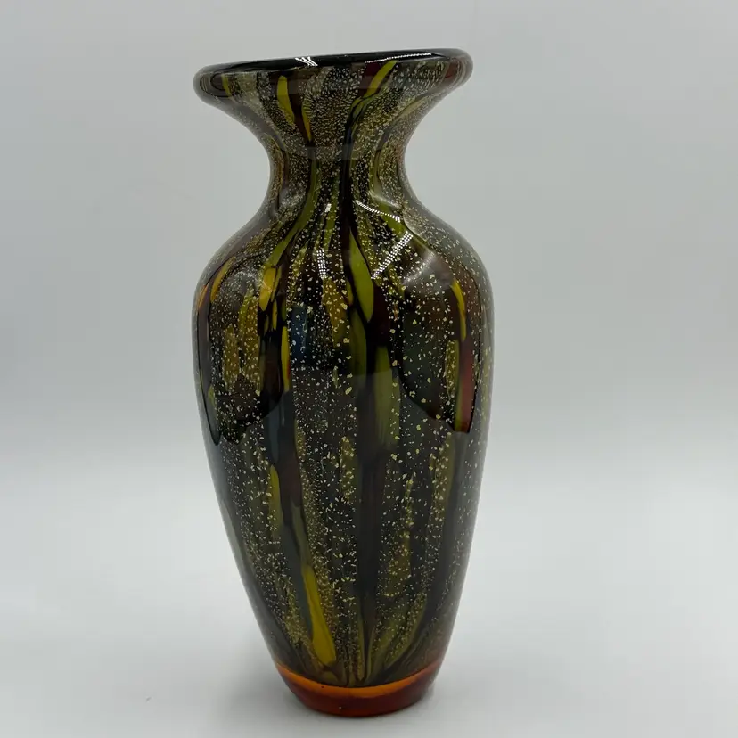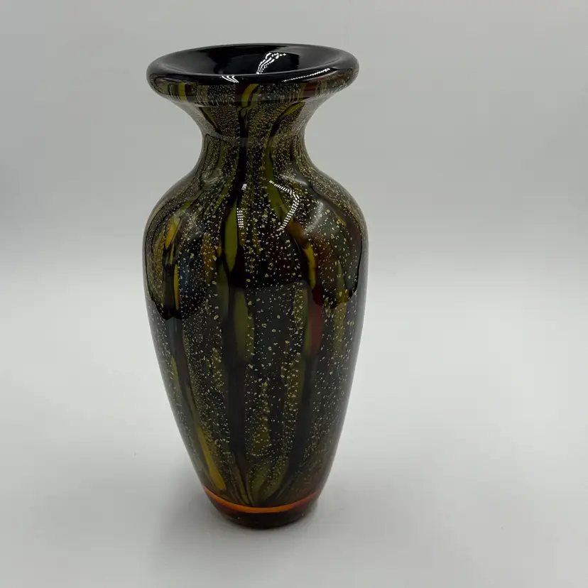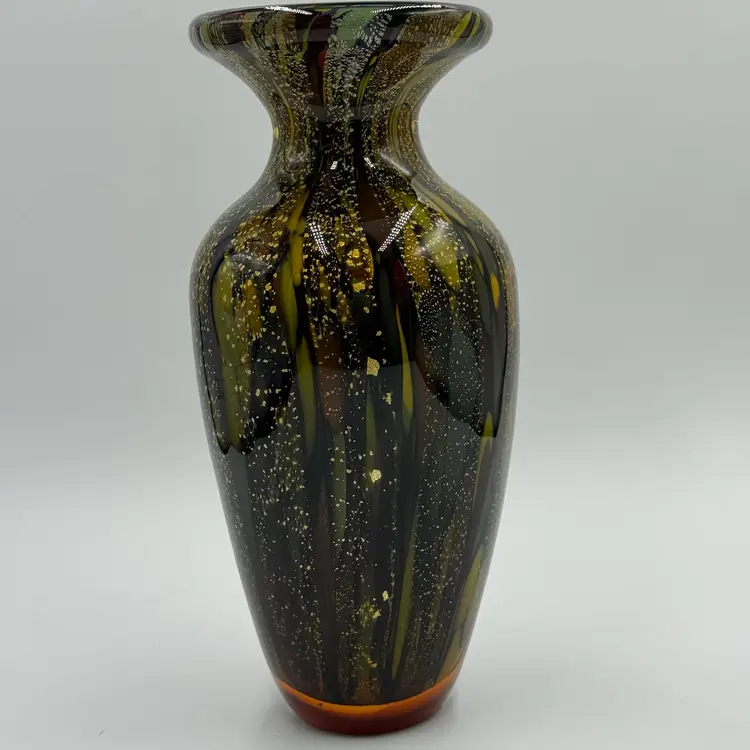 In good condition. Does not have any chips or cracks. There is a couple of minor scuff marks on the vase. Not very noticeable. Does not have a makers mark or signature. Measures 11 1/4 inches tall and 5 inches wide.