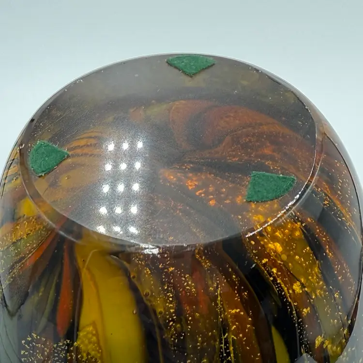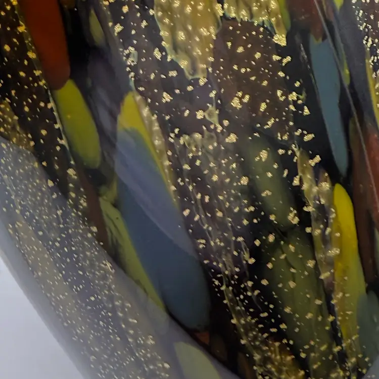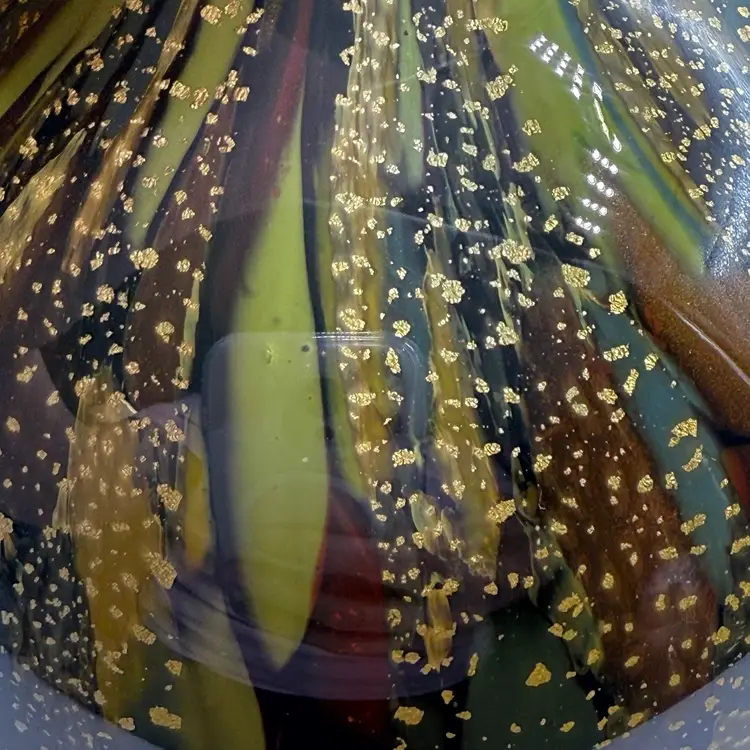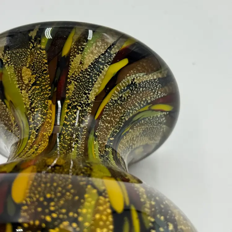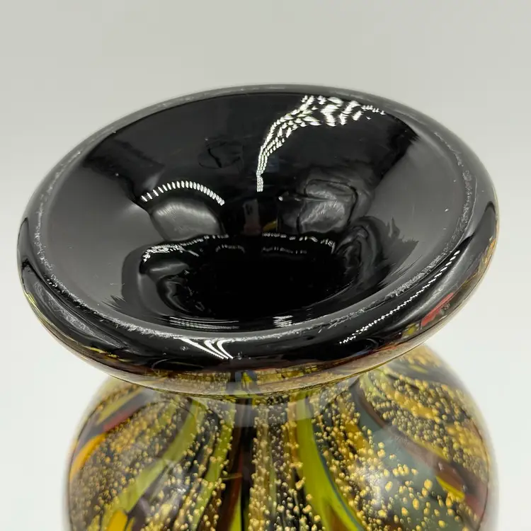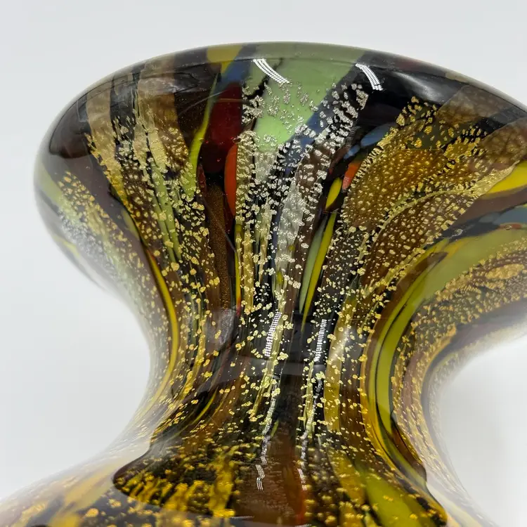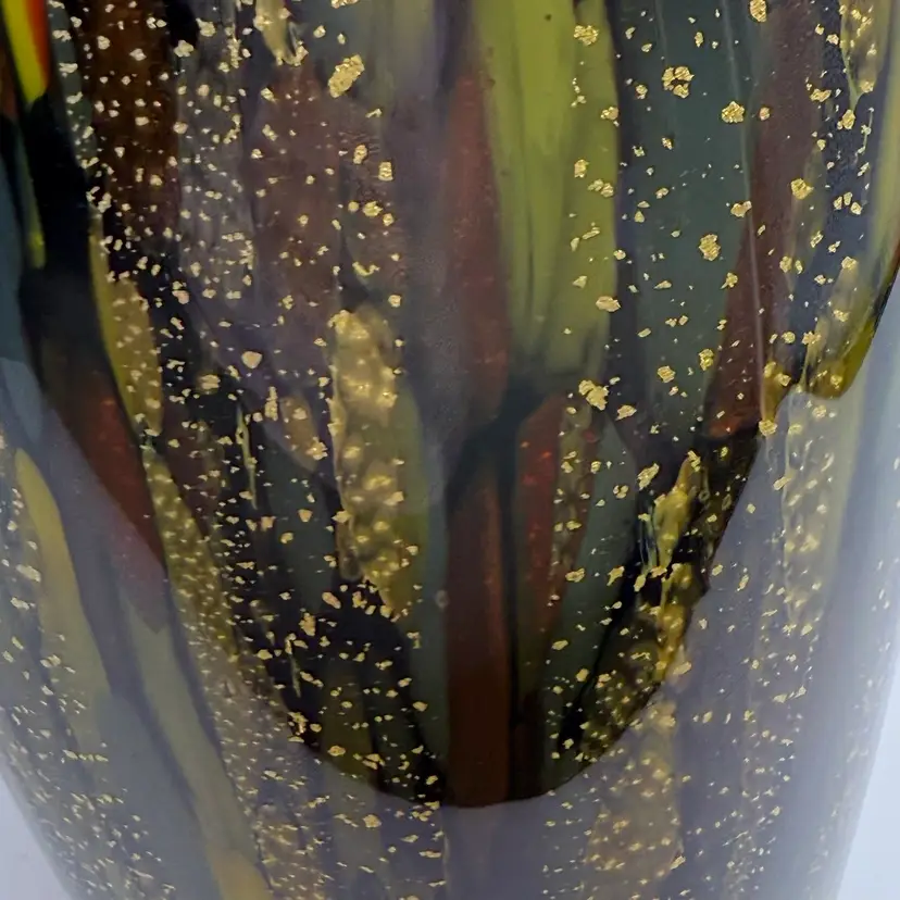 In good condition. Does not have any chips or cracks. There is a couple of minor scuff marks on the vase. Not very noticeable. Does not have a makers mark or signature. Measures 11 1/4 inches tall and 5 inches wide.