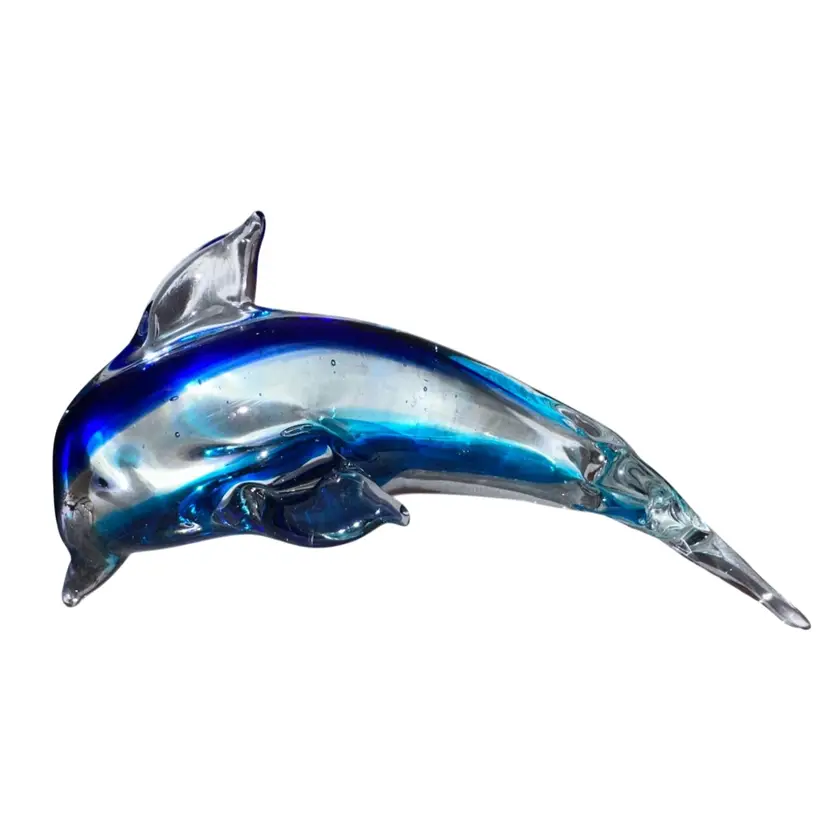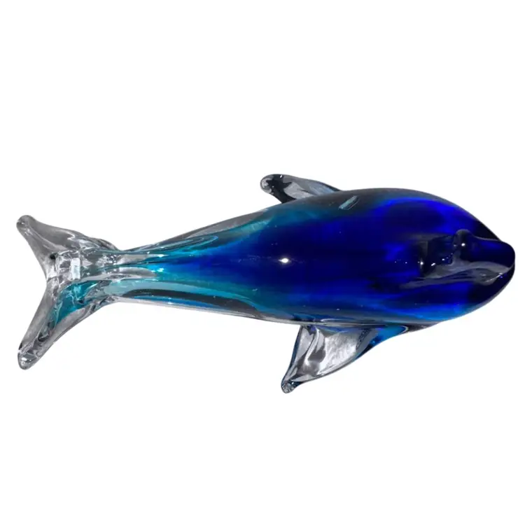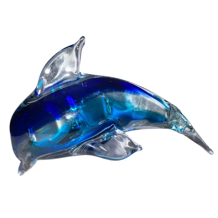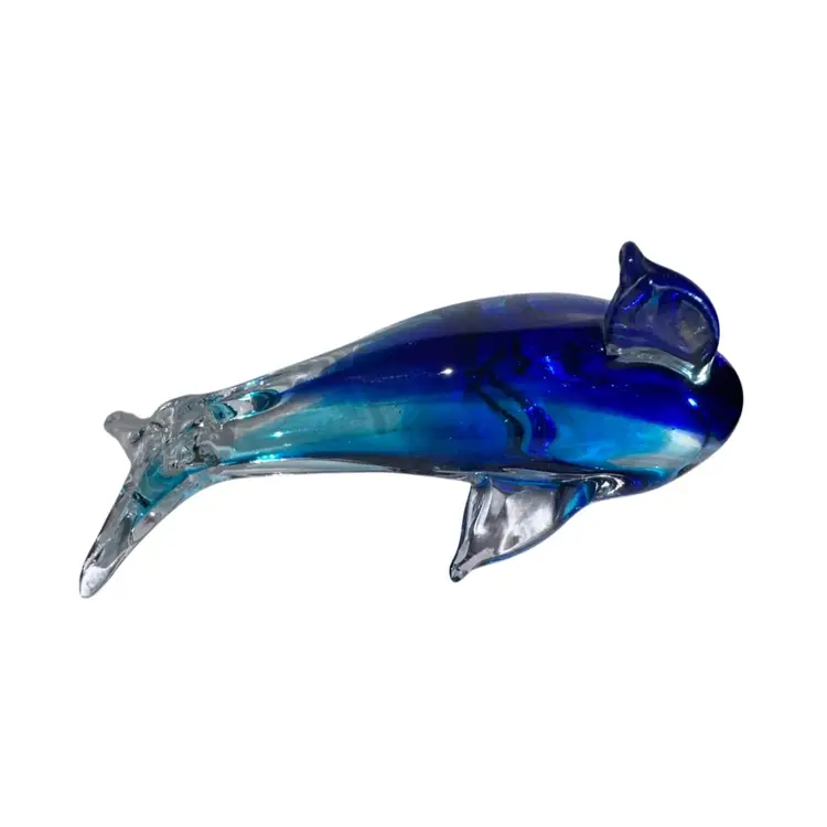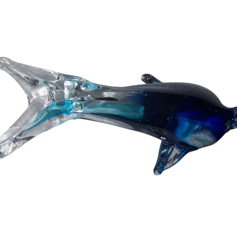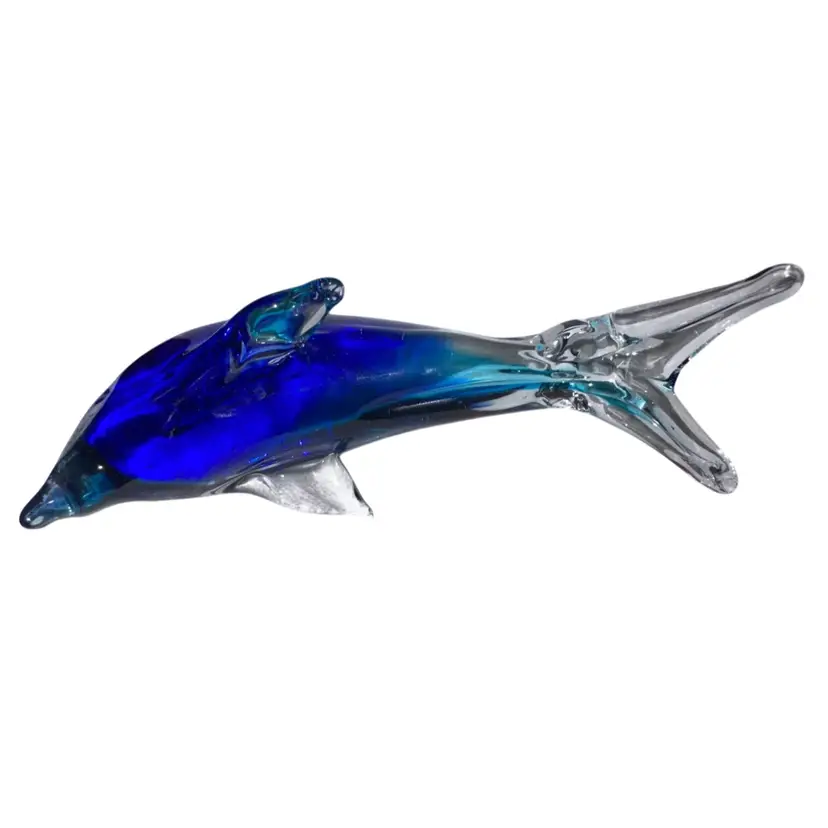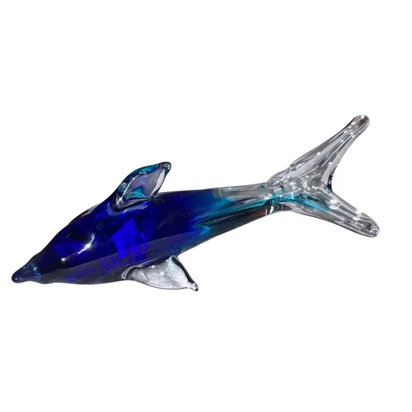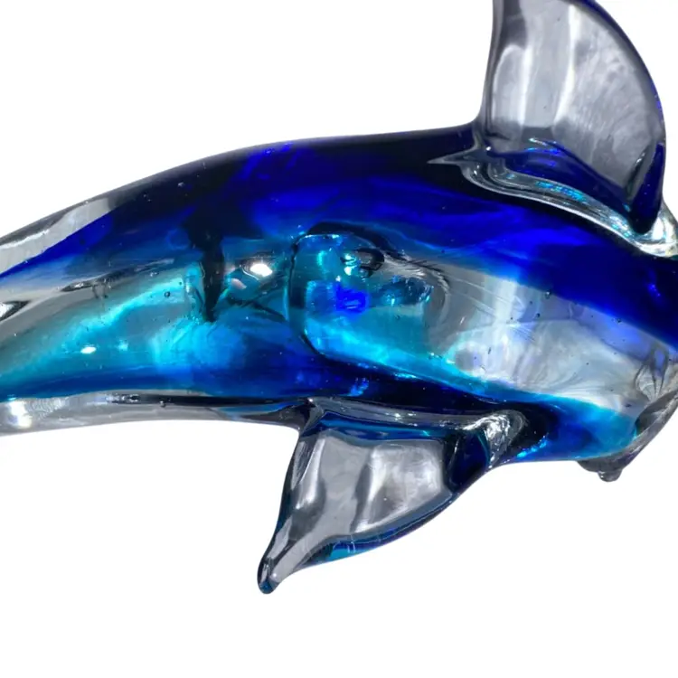 Art Glass Multi Blue & Clear Dolphin 3.5” T X 7” X 3” Excellent condition