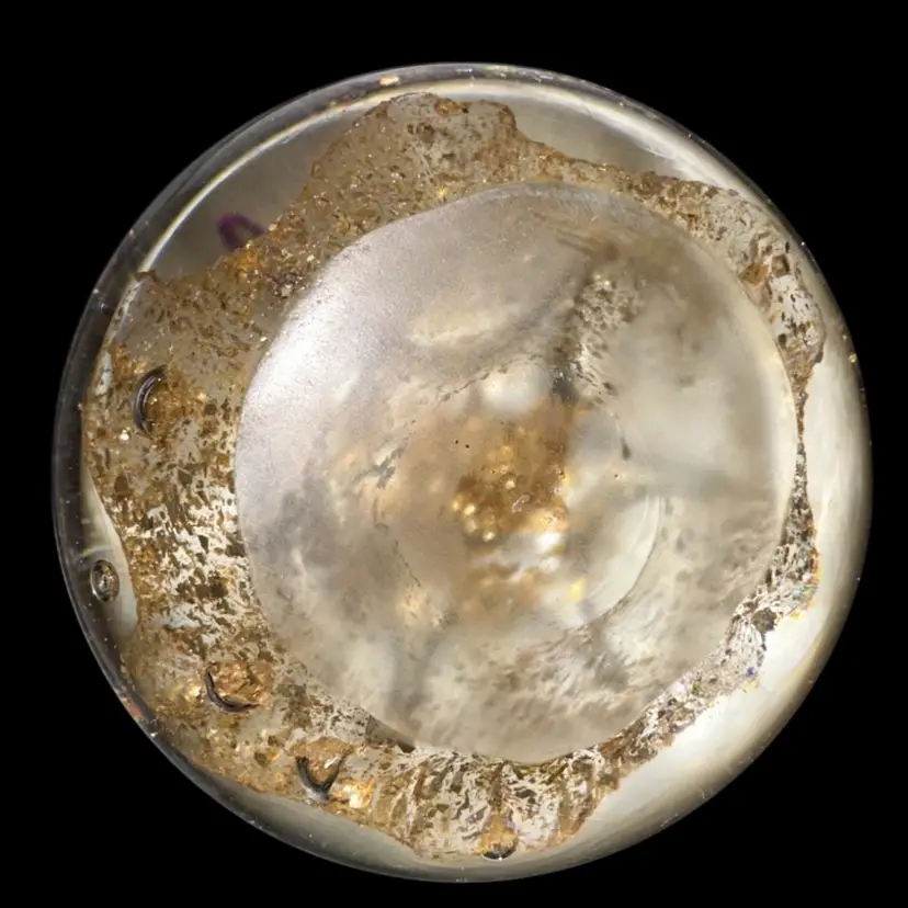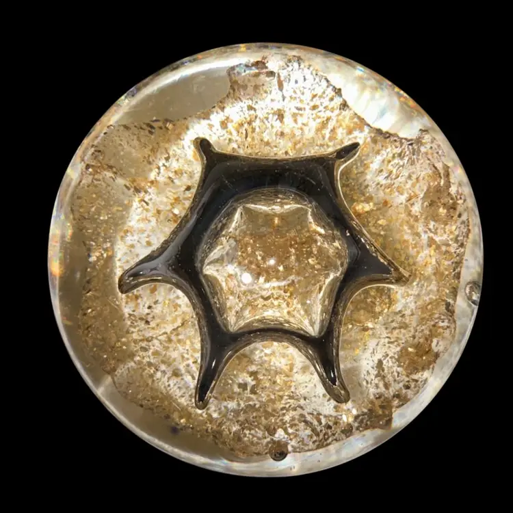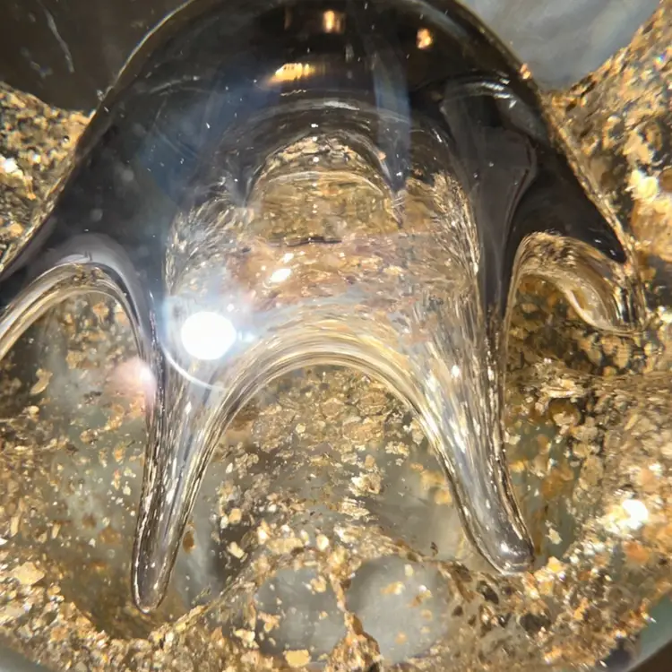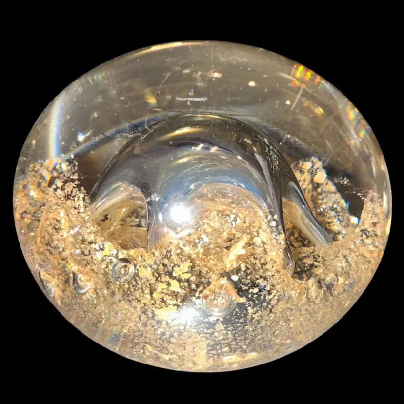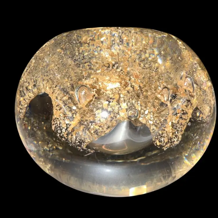 Art Glass Paperweight Clear Gold Flake Glitter Sea Star Bubble 3”T X 4” Diameter Smooth pontil No issues